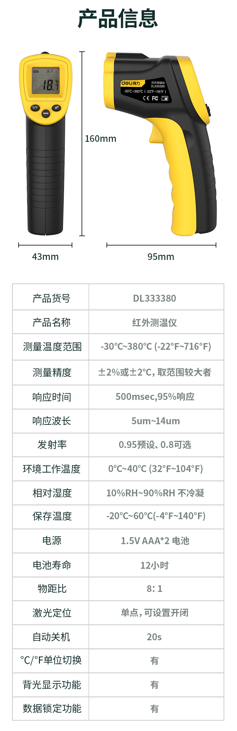 ДЛ333380Пистолет для измерения температуры с одной точкой -30~380℃; ДЛ333480 Температурный пистолет 9 часов -30℃~480℃Цветной экран; ДЛ333600Пистолет для измерения температуры, 9 точек -30~680℃Цветной экран; ДЛ333380 Термометр пистолет одноточечный -30~380℃; ДЛ333600 Температурный пистолет 9 точек -40℃~600℃Цветной экран; DL333850 термометр 9 точек -50~850 ℃; Термометр DL333105 с термопарой 9 точек -50~1050℃; Пистолет для измерения температуры HT3201, одноточечный, -30~380℃