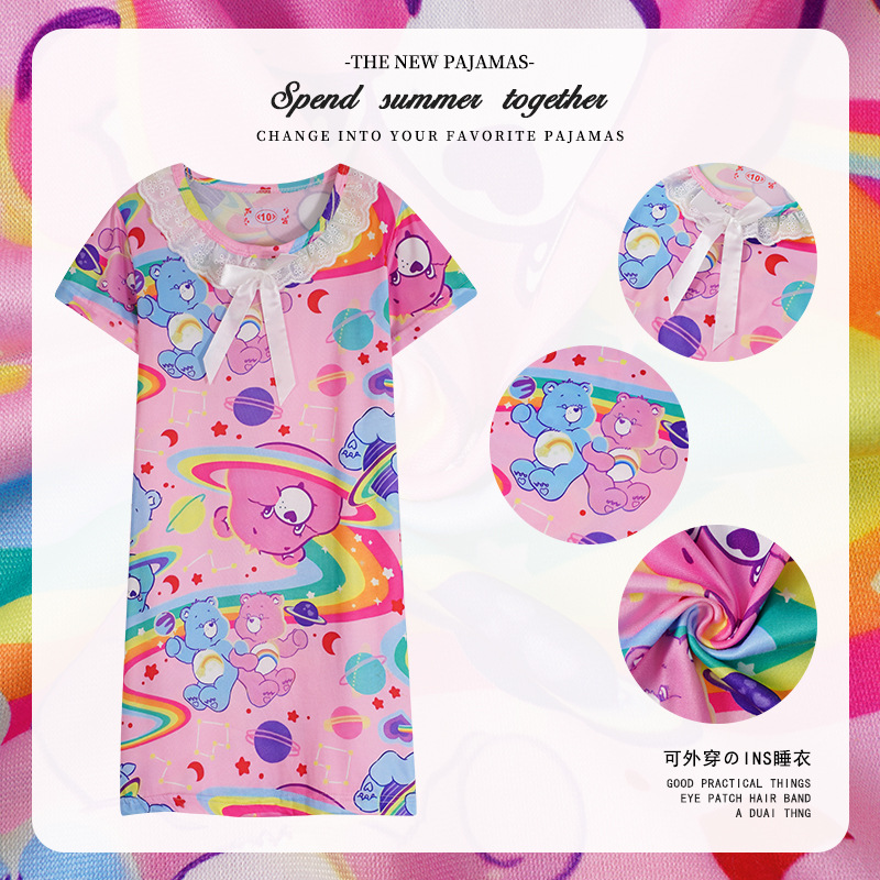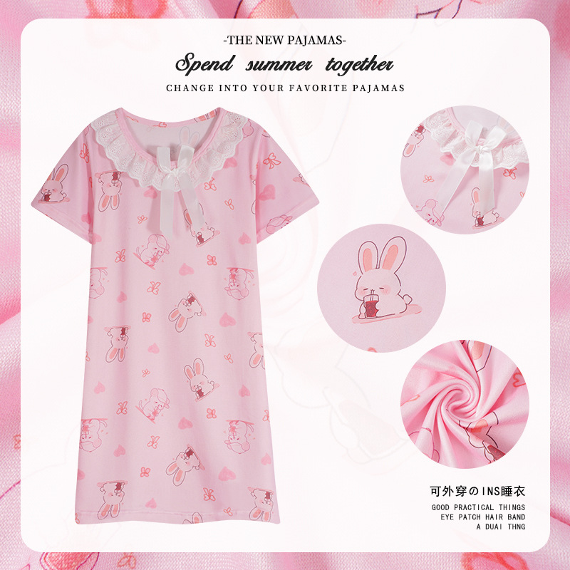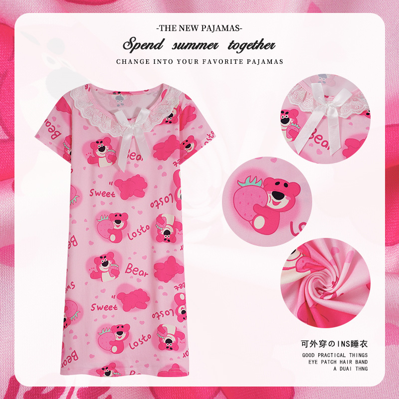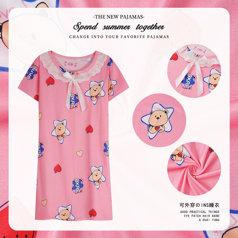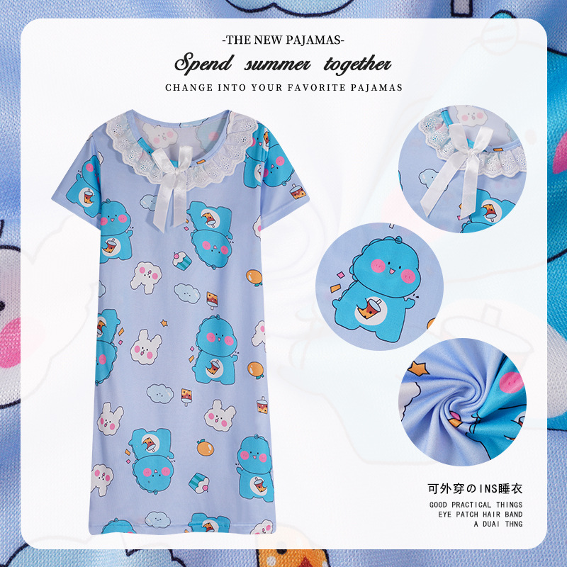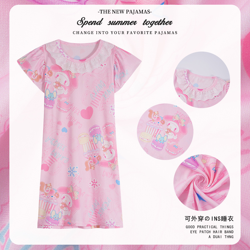 Оптовая продажа ночная рубашка для девочек, летняя новая одежда для девочек с короткими рукавами и кондиционером, Корейская тонкая Домашняя одежда, детская пижама, ночная рубашка