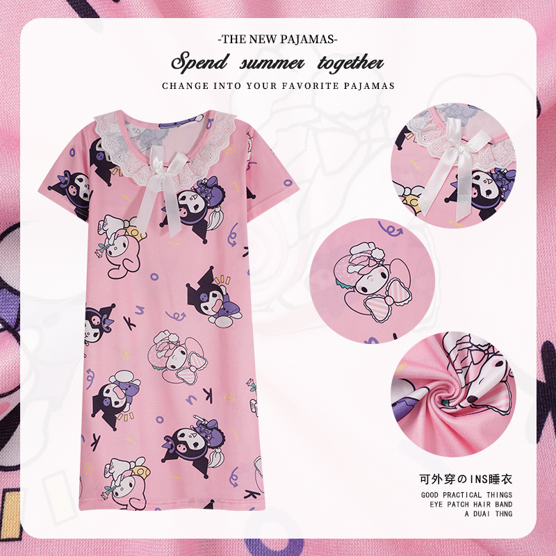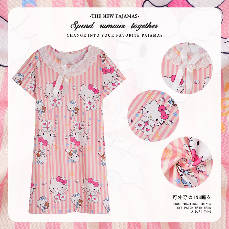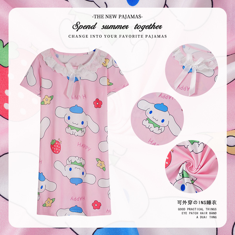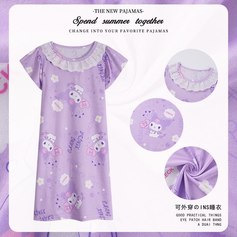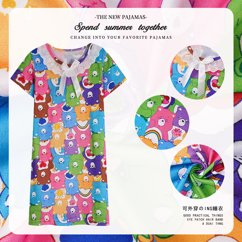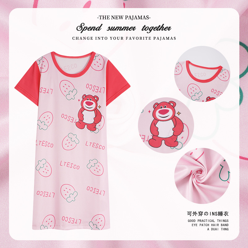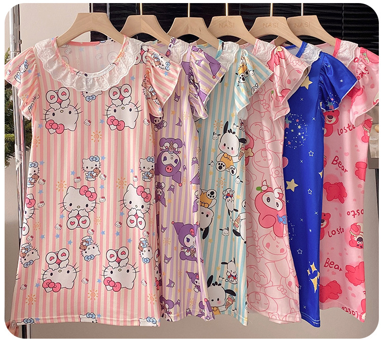 Оптовая продажа ночная рубашка для девочек, летняя новая одежда для девочек с короткими рукавами и кондиционером, Корейская тонкая Домашняя одежда, детская пижама, ночная рубашка
