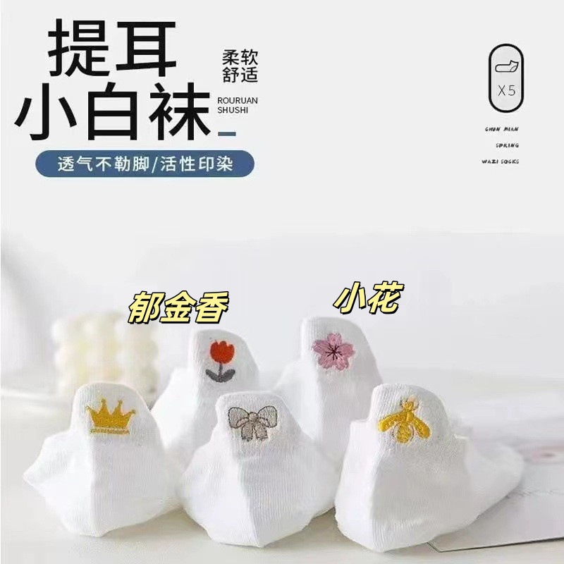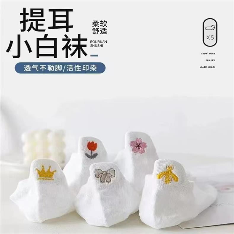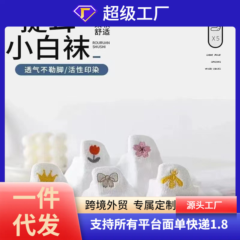Белые носки с вышивкой, женские носки, весна-осень, тонкие японские милые носки-лодочки с глубоким вырезом Four Seasons, модные Студенческие Носки