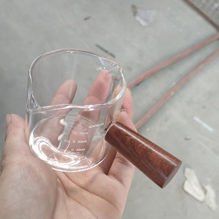 Маленькая чашка для молока из боросиликатного стекла с ручкой Мини-молочная чашка для итальянского кофе и молока с деревянной ручкой с острым горлом Маленькая чашка для молока