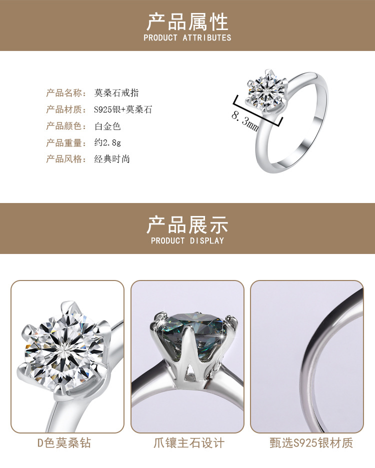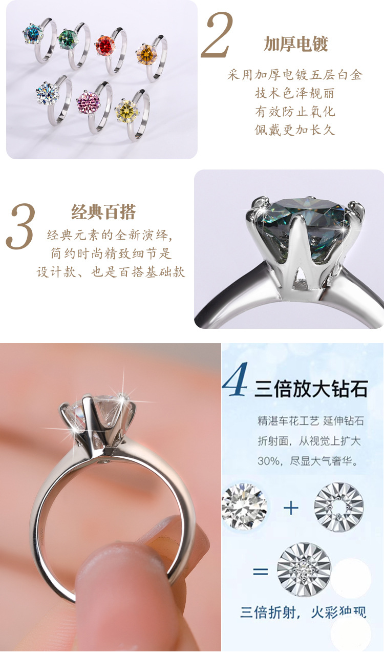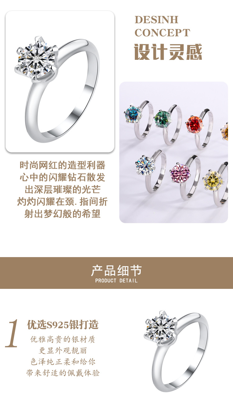 Трансграничная классическая T-семья с шестью когтями Mo Sang бриллиантовое кольцо GRA бриллиантовое кольцо s925 стерлингового серебра 1 карат светло-экстравагантного высокого чувства предложения