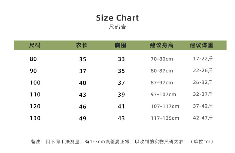80 см; 90 см; 100 см; 110 см; 120 см; 130 см