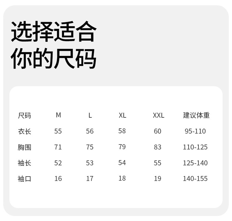 М【 42.5-52.5kg 】; Л【 52.5-60kg 】; XL【 60-67.5kg 】; XXL【 67.5-75kg 】
