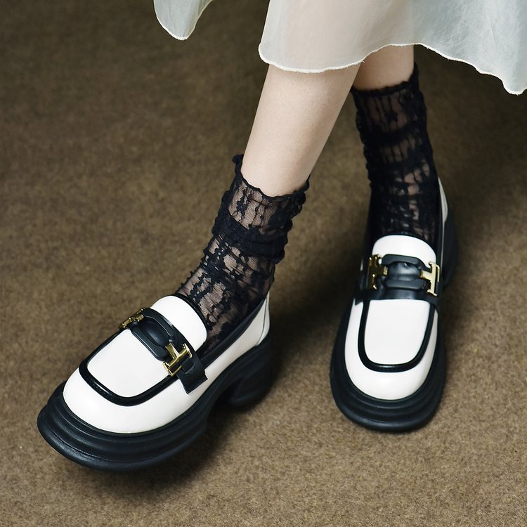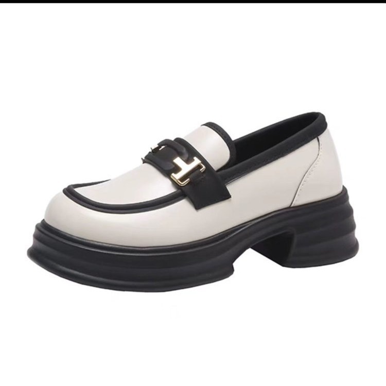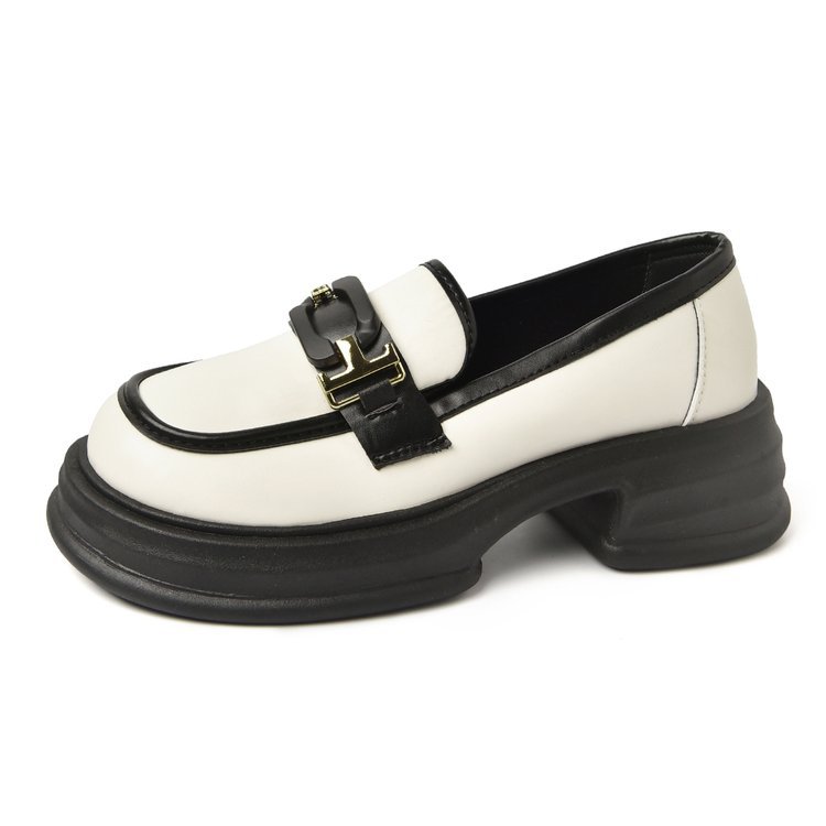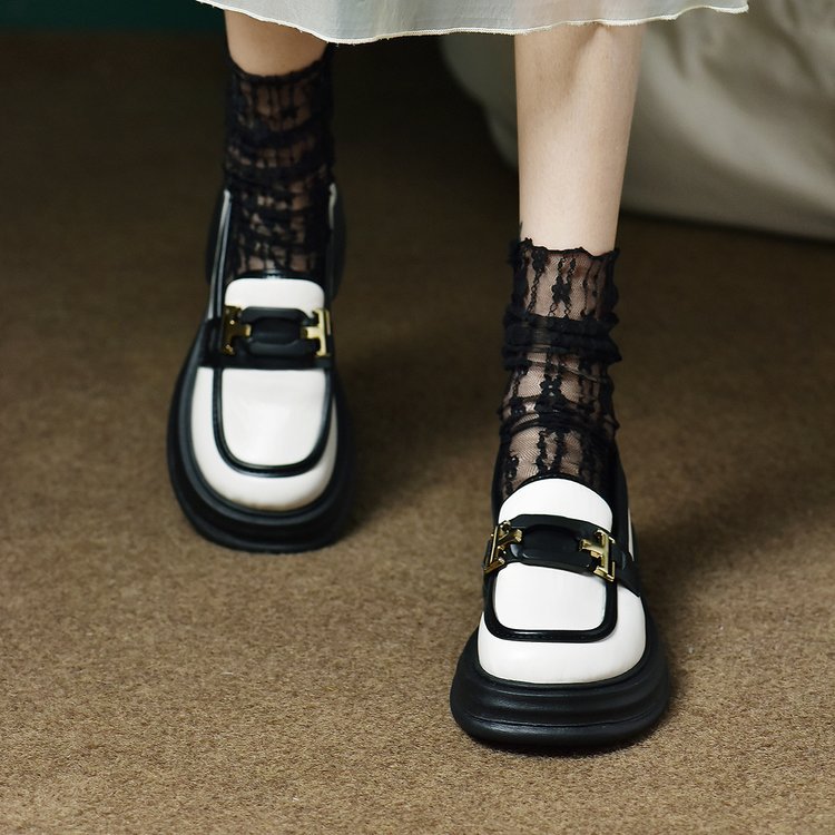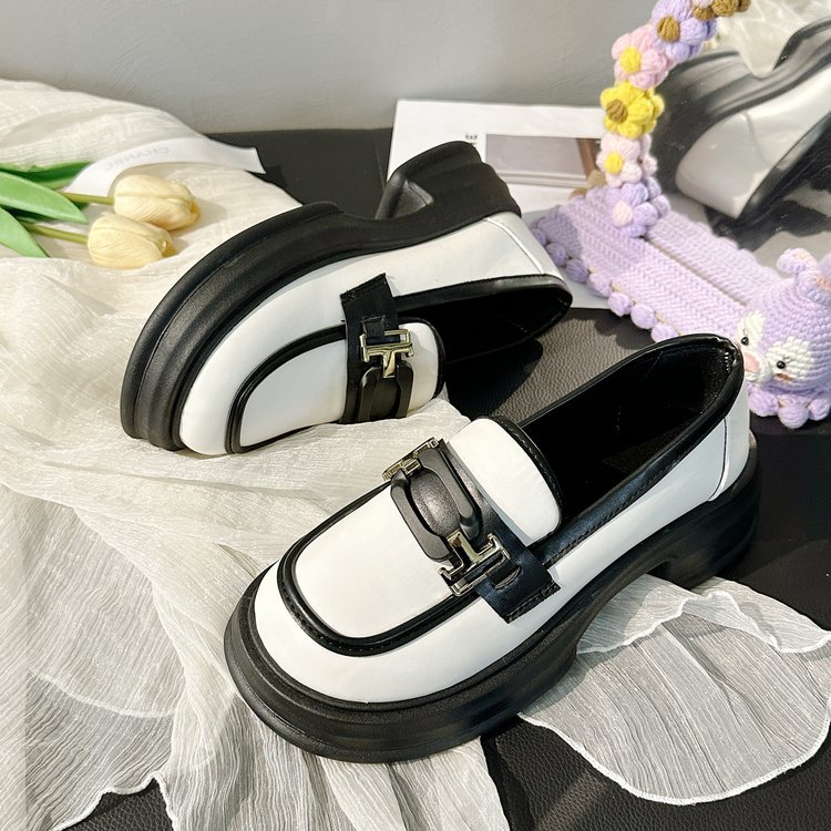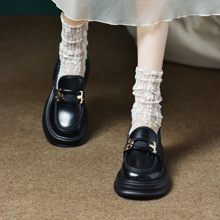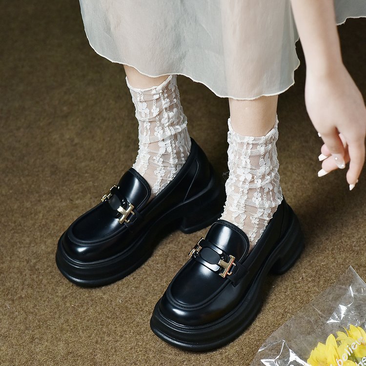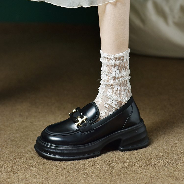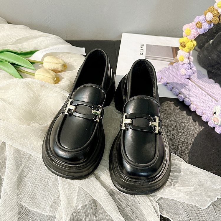 Кожаные туфли на толстой подошве, лоферы, новинка 2023 года, весна, легко сочетаются с черными туфлями британской Мэри Джейн, круглый носок, в стиле ретро