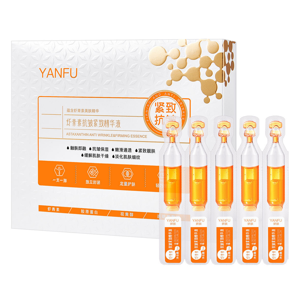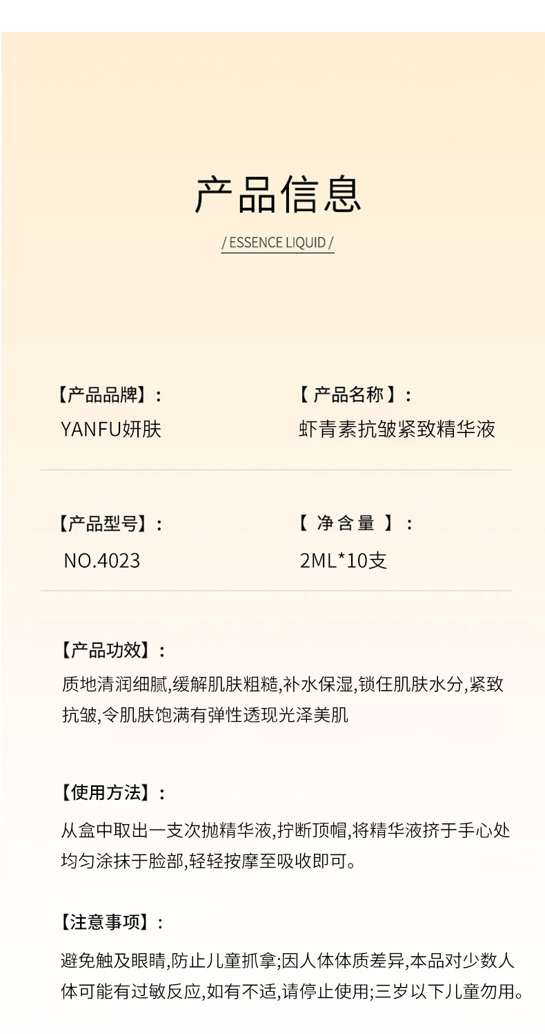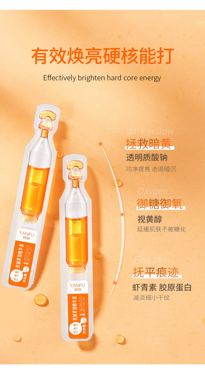 Эссенция астаксантина для кожи Yan улучшает поздний сон, антиоксидант, увлажняющий, Осветляющий, восстанавливающий одноразовый набор эссенций для лица