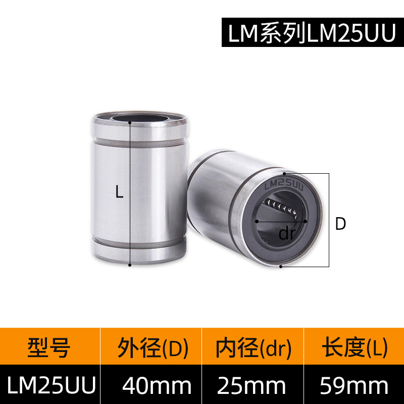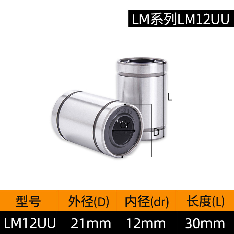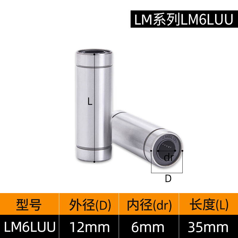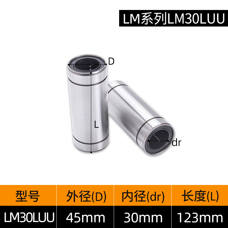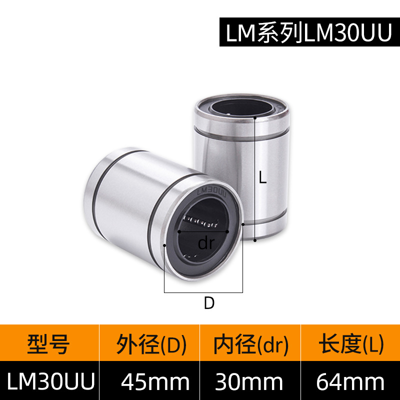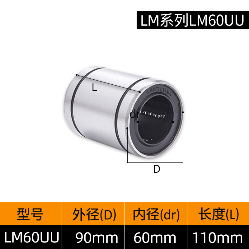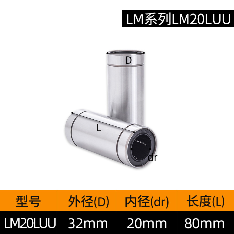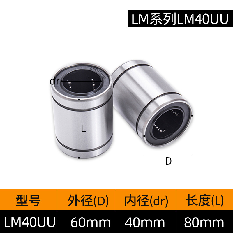 LM3UU [обычная модель] 3*7*10 мм; LM4UU [обычная модель] 4*8*12 мм; LM5UU [обычная модель] 5*10*15 мм; LM6UU [обычная модель] 6*12*19 мм; LM6LUU [обычный стиль] 6*12*35 мм; LM8UU [обычный стиль] 8*15*24 мм; LM8LUU [обычный стиль] 8*15*45 мм; LM10UU [обычный стиль] 10*19*29 мм; LM10LUU [обычный стиль] 10*19*55 мм; LM12UU [обычная модель] 12*21*30 мм; LM12LUU [обычный стиль] 12*21*57 мм; LM13UU [обычная модель] 13*23*32 мм; LM13LUU [обычный стиль] 13*23*61 мм; LM16UU [обычная модель] 16*28*37 мм; LM16LUU [обычный стиль] 16*28*70 мм; LM20UU [обычный стиль] 20*32*42 мм; LM20LUU [обычный стиль] 20*32*80 мм; LM25UU [обычный стиль] 25*40*59 мм; LM25LUU [обычный стиль] 25*40*112 мм; LM30UU [обычная модель] 30*45*64 мм; LM30LUU [обычный стиль] 30*45*123 мм; LM35UU [обычный стиль] 35*52*70 мм; LM35LUU [обычный стиль] 35*52*135 мм; LM40UU [обычная модель] 40*60*80 мм; LM40LUU [обычный стиль] 40*60*151 мм; LM50UU [обычная модель] 50*80*100 мм; LM50LUU [обычный стиль] 50*80*192 мм; LM60UU [обычная модель] 60*90*110 мм; LMK8LUU; LMH40LUU; LMK50UU