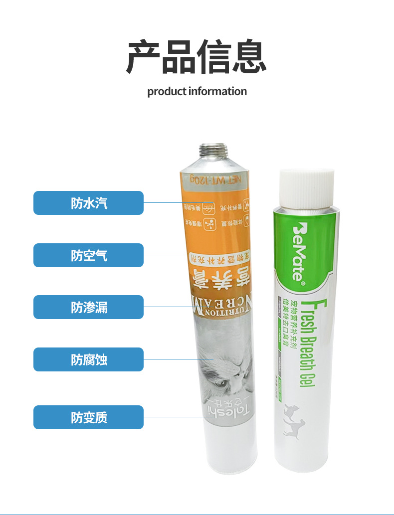 Прямые поставки с завода питательных добавок для домашних животных, композитный шланг из алюминиево-пластика, крем для удаления кошачьей шерсти, упаковка из алюминиевой трубки