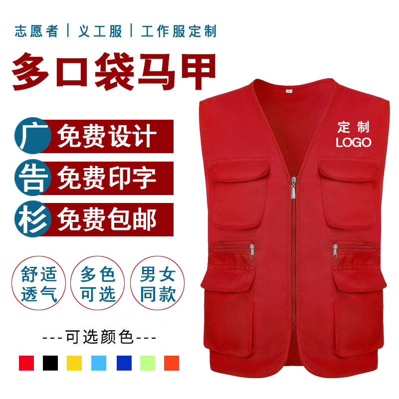 Жилет волонтера с несколькими карманами, напечатанный на заказ логотип, жилет для волонтерской деятельности, реклама общественного благосостояния, рабочая одежда