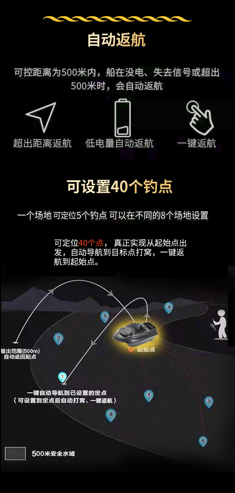 厂家直销跨境智能打窝遥控船GPS双仓自动返航打窝钓鱼船