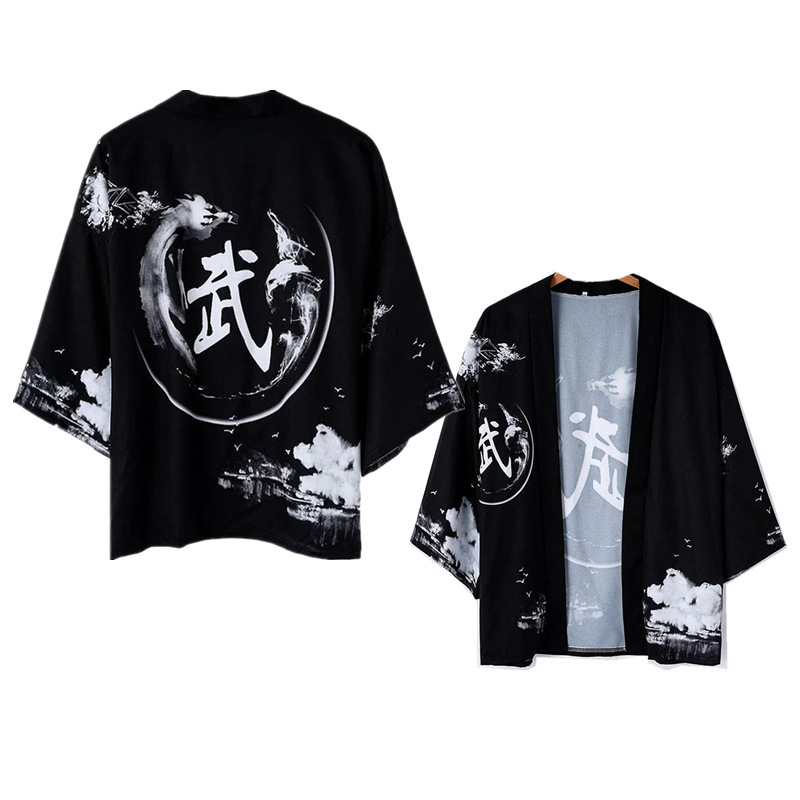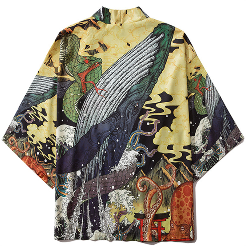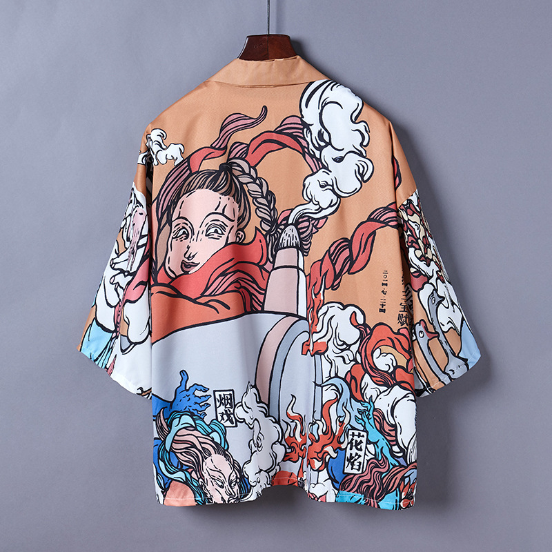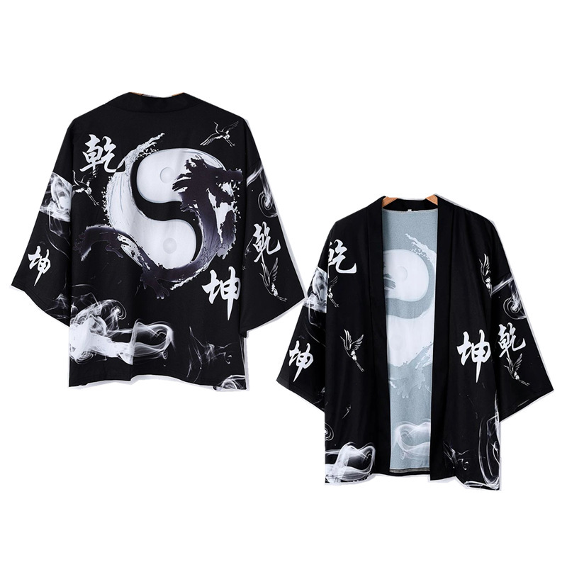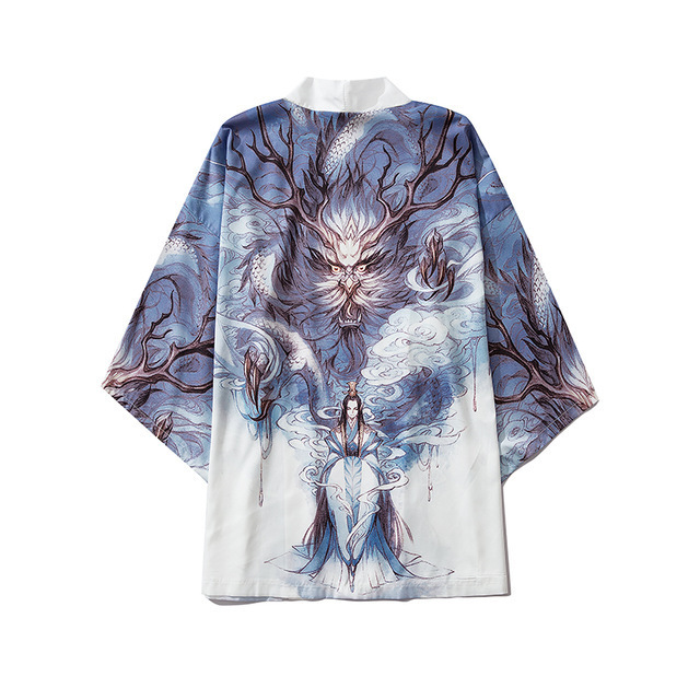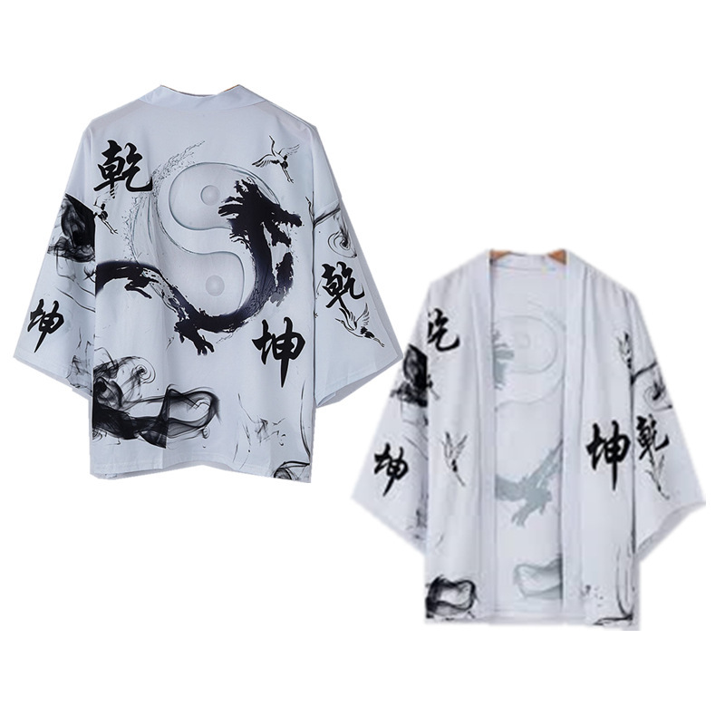 2024 китайский стиль огненный Феникс Дракон Тотем элемент перо тканый кардиган кимоно укиё-э журавль сплетни Карп плащ
