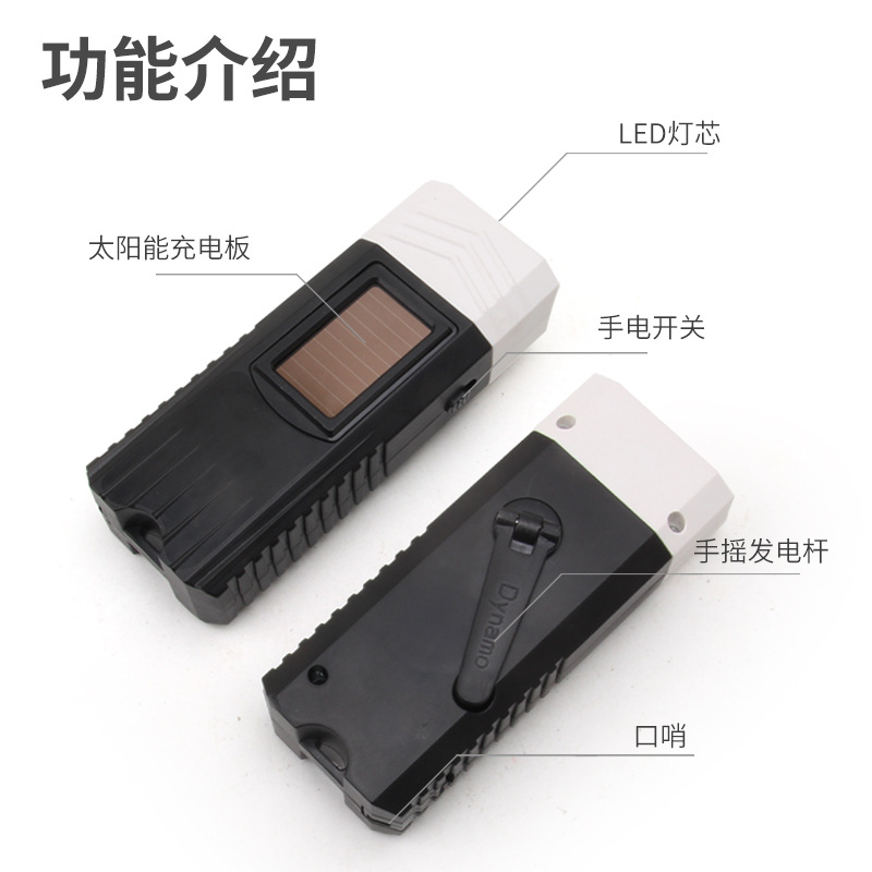 1.手摇发电,连续使用时间120分钟,使用时间长达10万小时