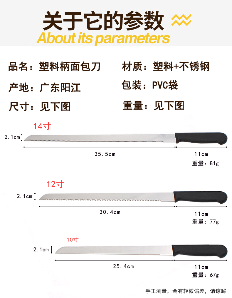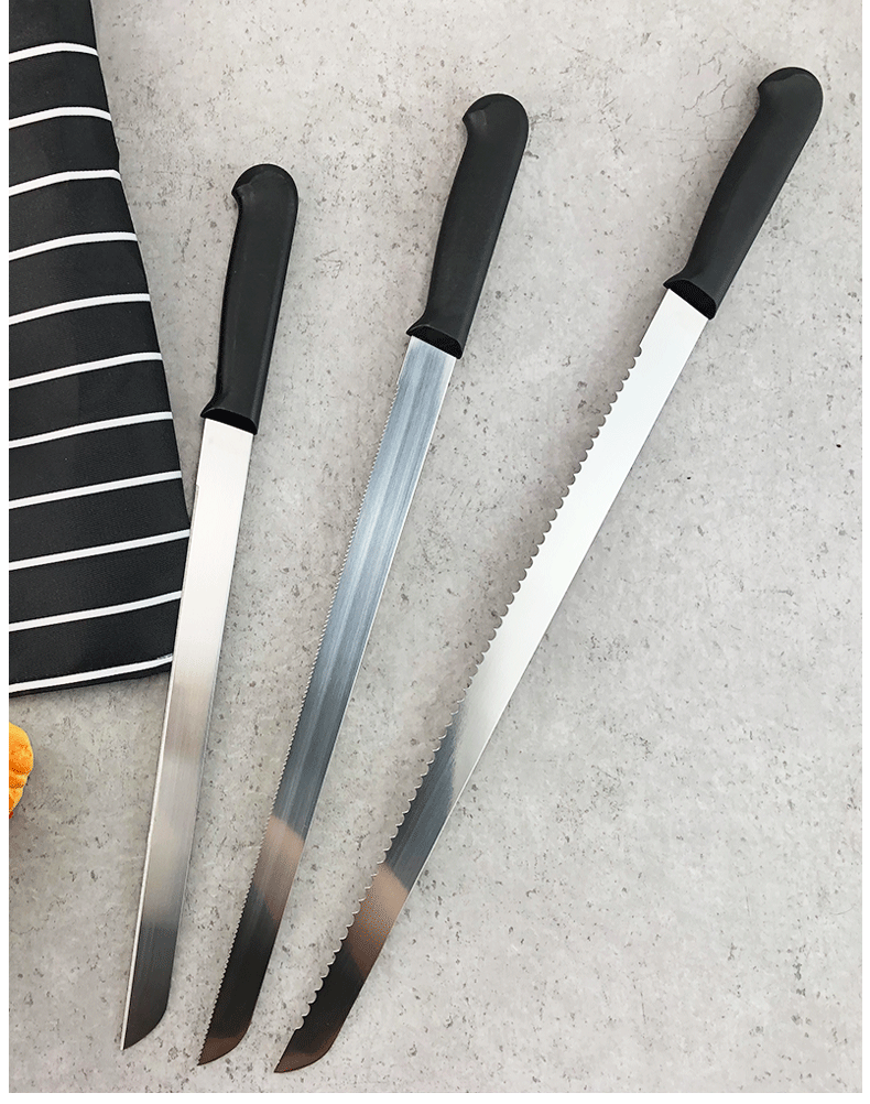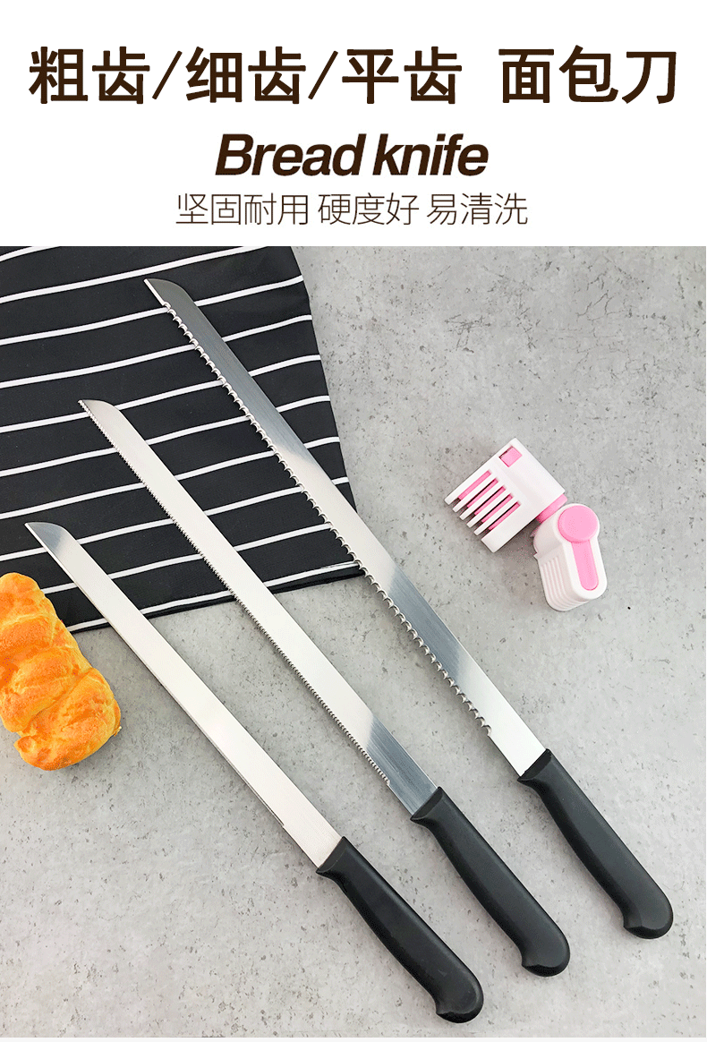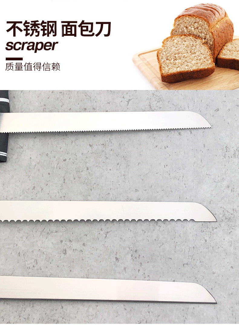 10-дюймовый нож для хлеба с мелкими зубьями; 10-дюймовый хлебный нож с крупными зубьями; 10-дюймовый нож для хлеба с плоскими зубьями; 12-дюймовый нож для хлеба с мелкими зубьями; 12-дюймовый нож для хлеба с грубыми зубьями; 12-дюймовый нож для хлеба с плоскими зубьями; 14-дюймовый нож для хлеба с мелкими зубьями; 14-дюймовый хлебный нож с крупными зубьями; 14-дюймовый нож для хлеба с плоскими зубьями
