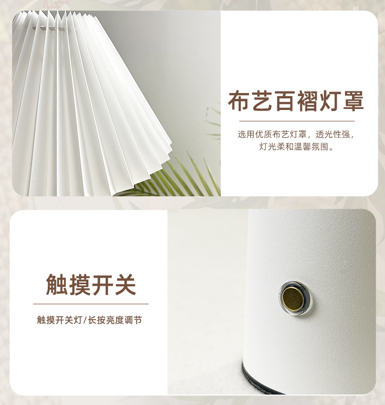 Новая перезаряжаемая ночная лампа из плиссированной ткани, стильная и элегантная лампа для спальни, креативный подарок, декоративная настольная лампа.