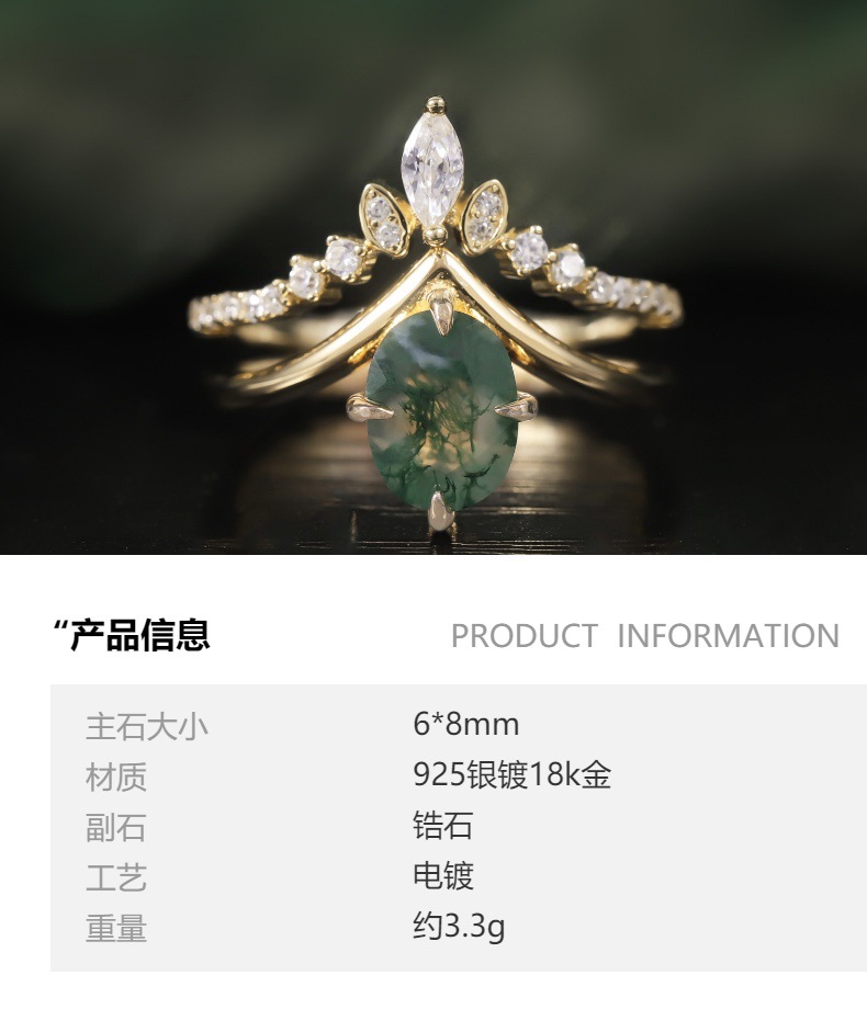 Трансграничный взрыв натуральный водяной травяной агат кольцо s925 стерлингового серебра зеленый мох драгоценный камень V-образное кольцо