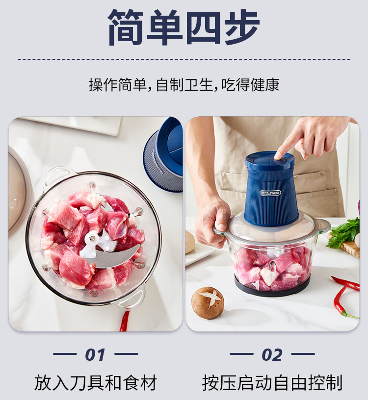 Мощная мясорубка бытовая мясная начинка стеклянная миска многофункциональный электрический варочный аппарат чесночный измельчитель фарш малый