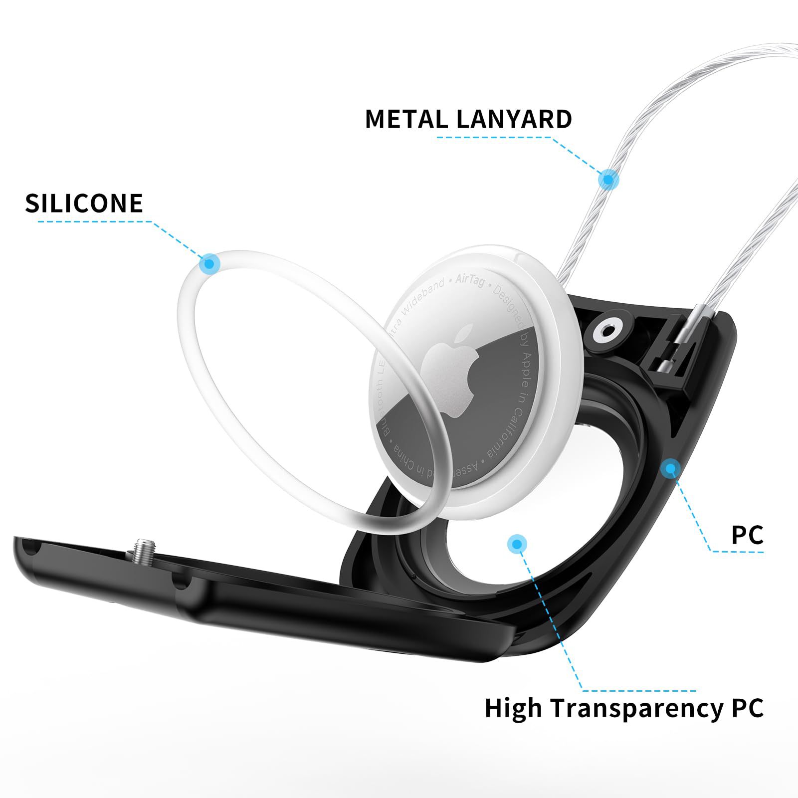 产品材质:不锈钢金属绳+PC主体 (防水)