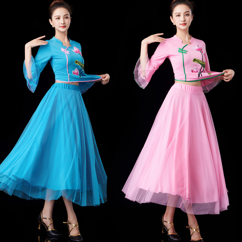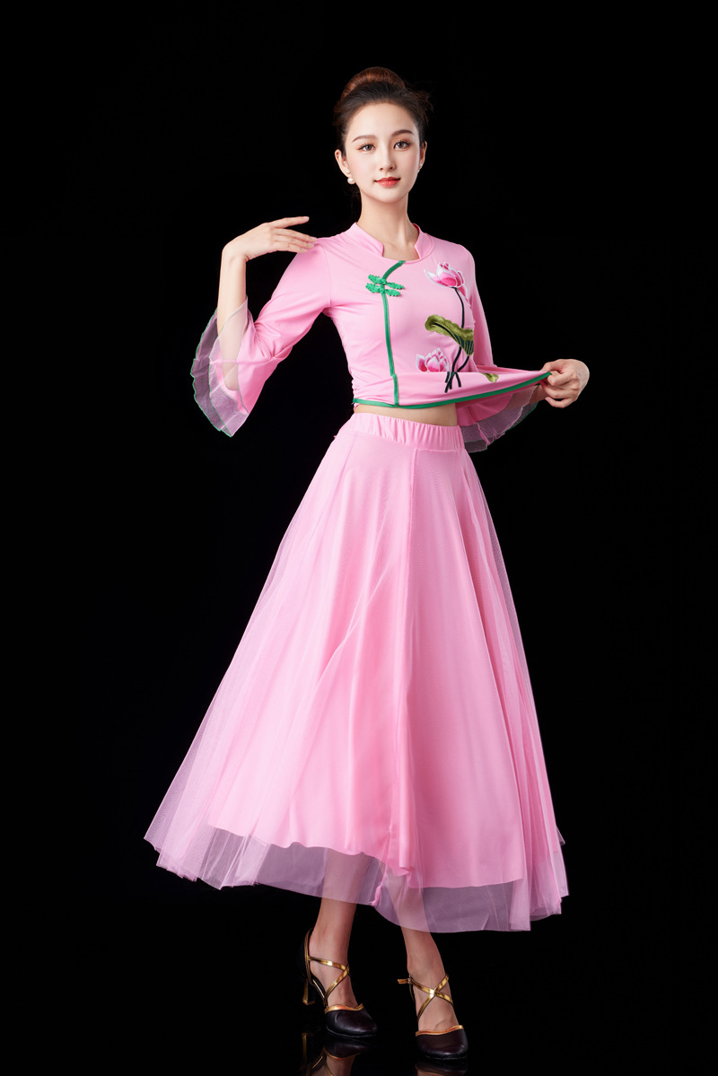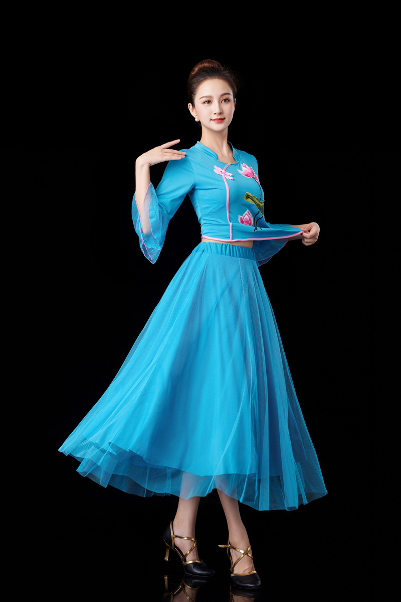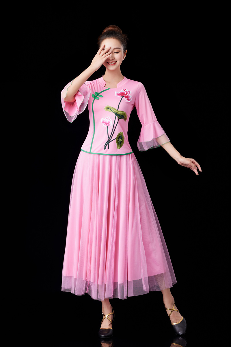 Ярко-красные топы Lotus со средними рукавами + красная длинная юбка; Розовый топ Lotus со средними рукавами + розовая длинная юбка; Лотосовый синий топ со средними рукавами + длинная синяя юбка; Ярко-красный топ Lotus со средними рукавами + белая длинная юбка; Розовый топ Lotus со средними рукавами + белая длинная юбка; Лотосовый топ озерно-синего цвета со средними рукавами + белая длинная юбка; Цельное платье из красной сетки; Цельная длинная юбка из синей сетки озера; Цельное розовое сетчатое платье; Цельный ярко-красный топ с лотосом и средними рукавами; Цельный розовый топ с рукавами средней длины в форме лотоса; Синий топ с длинными рукавами и лотосом из цельного куска; Красное платье Lotus с длинными рукавами + красная сетка; Синее платье Lotus с длинными рукавами + длинная юбка из синей сетки; Розовое платье Lotus с длинными рукавами + длинная юбка из розовой сетки