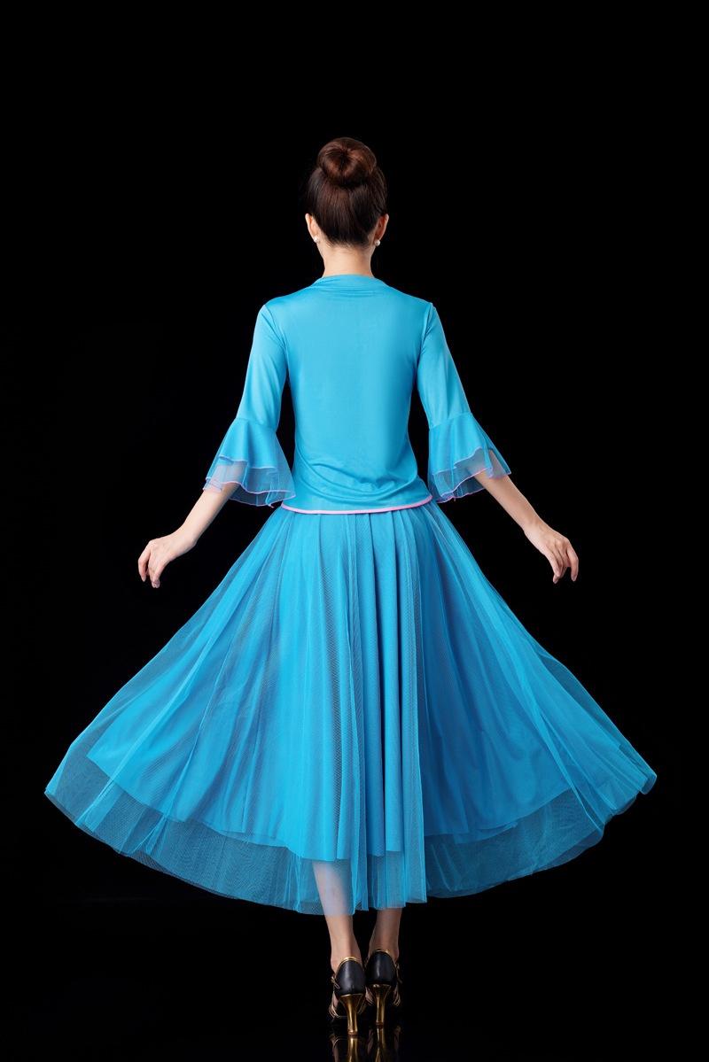广场舞衣服尺码偏小: 牛奶丝面料。有弹性,有垂感,