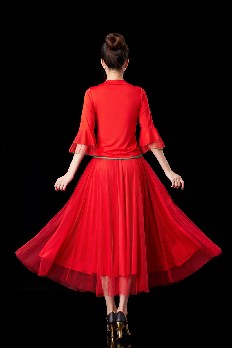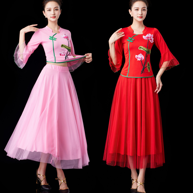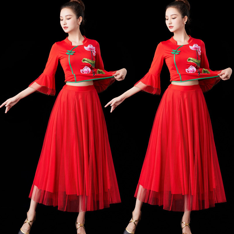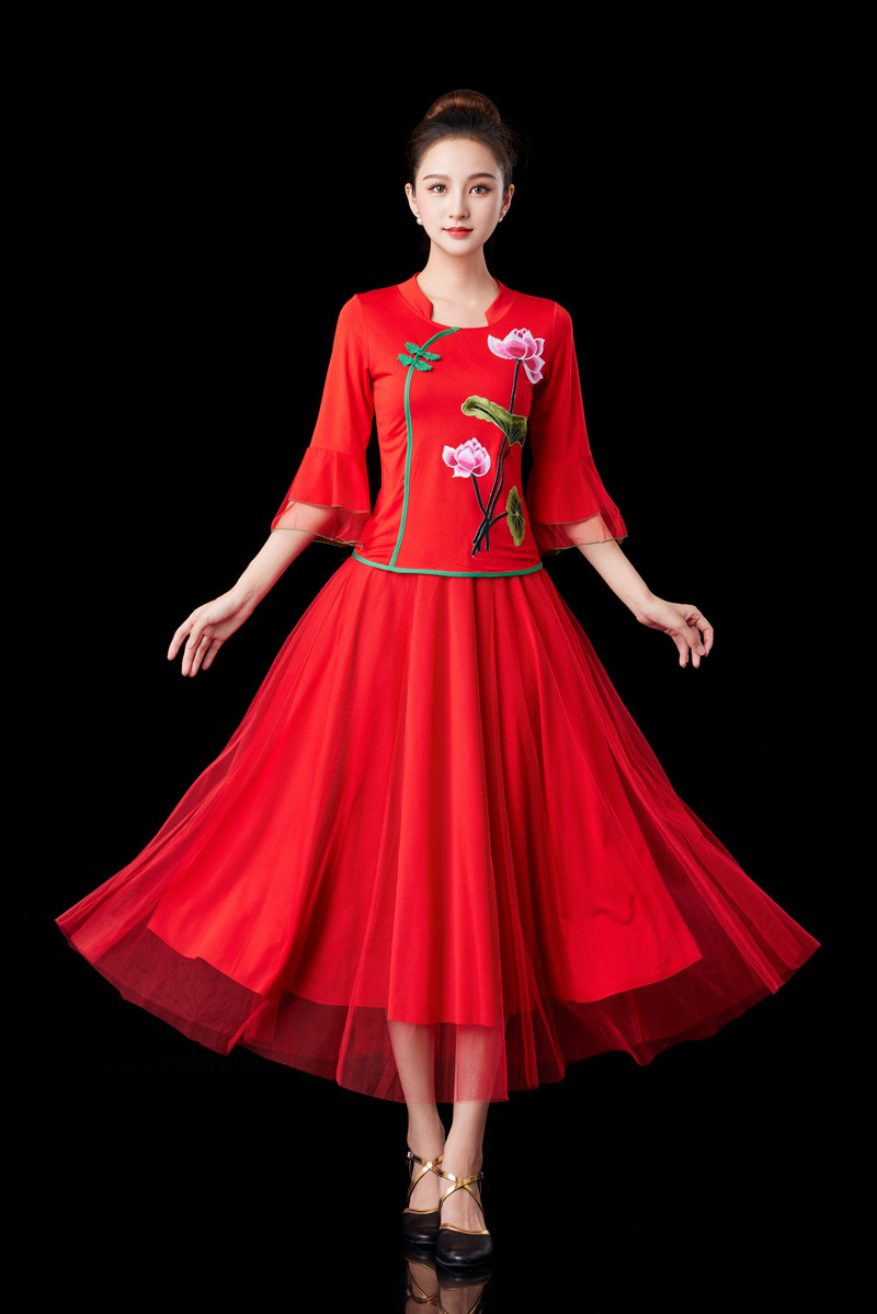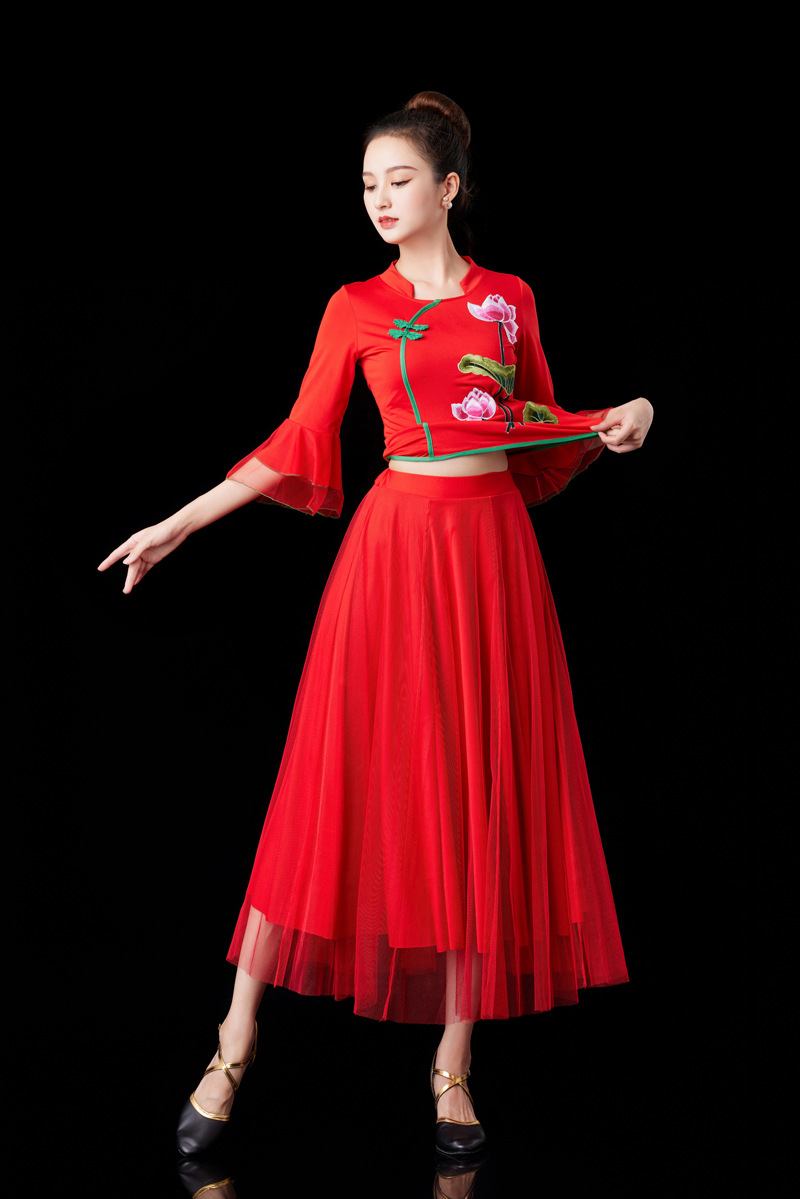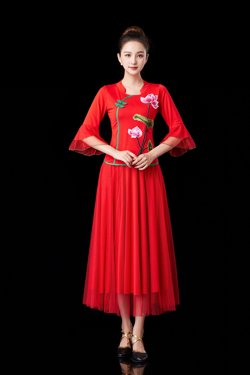 2024 Красная Новая площадь танцевальная одежда танцевальный костюм среднего и пожилого возраста групповой конкурс выступлений Yangko танцевальная одежда