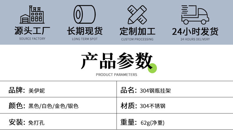 卫生间洗发水挂架壁挂浴室置物收纳架304不锈钢免打孔沐浴露瓶挂