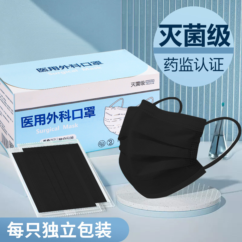 Маска одноразовая черная медицинская хирургическая трехслойная Защитная дышащая медицинская стерилизация независимая упаковка оптом в наличии