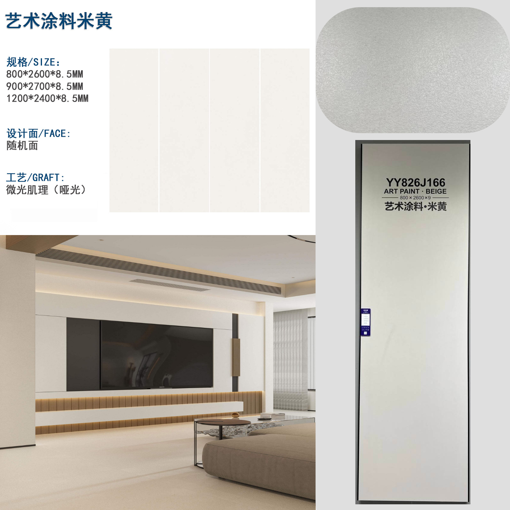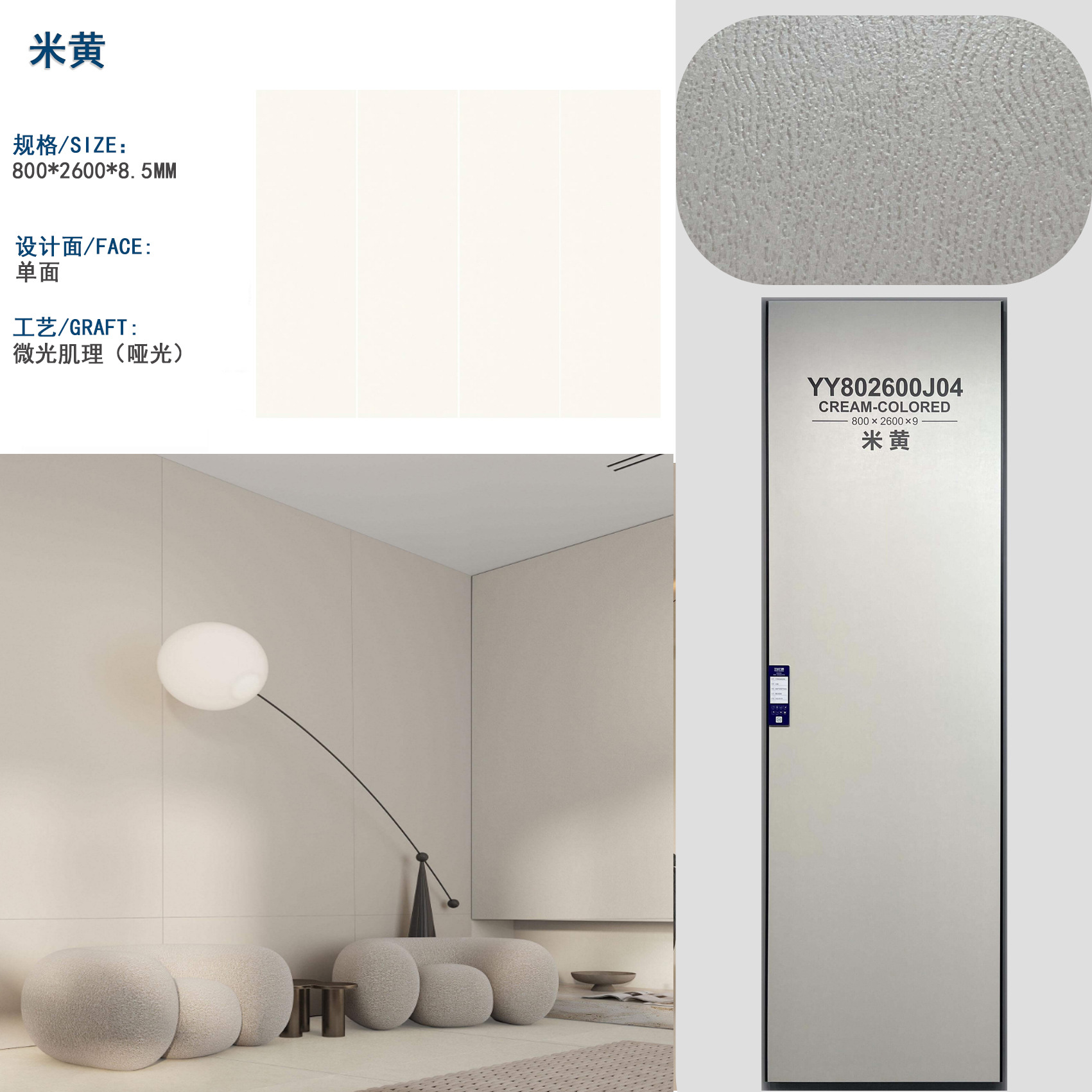 Каменная плита 800*2600 мм с тонкой текстурой, однотонная, в кремовом стиле, с эффектом древесины, с тканевым узором, из известняка, для облицовки стен спальни.