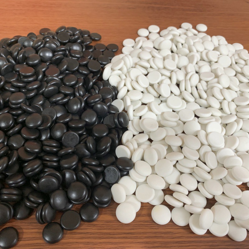 100 черно-белых шахматных фигур диаметром 1,4 см (по 50 черно-белых фигур каждая)