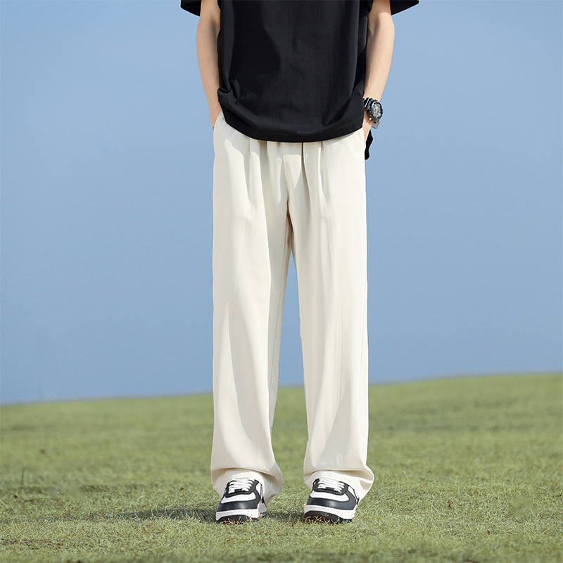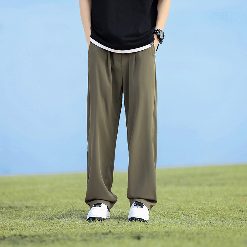 Американские ретро брюки из ледяного шелка, мужские весенне-летние тонкие брюки с драпировкой, прямые свободные повседневные брюки