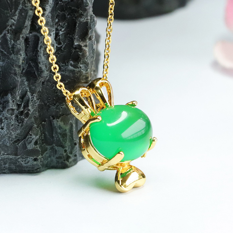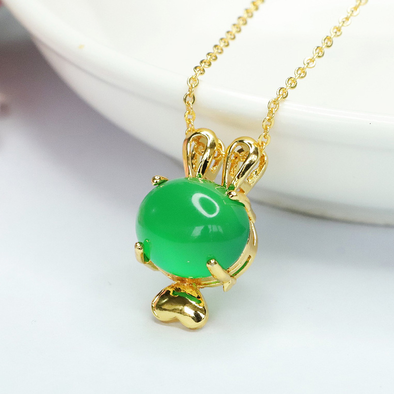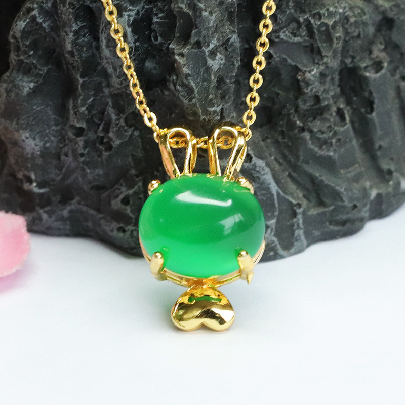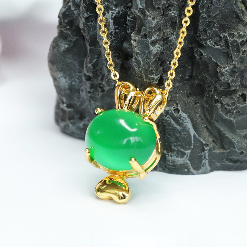 JUANYU на заказ ледяной тип императорский зеленый халцедон кулон в виде кролика агат ожерелье оптовая продажа с фабрики дропшиппинг MN3052407