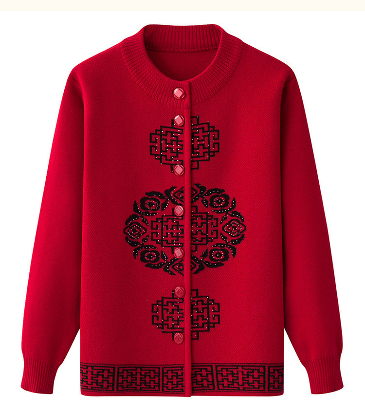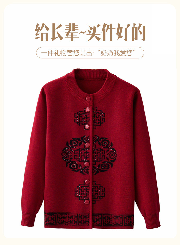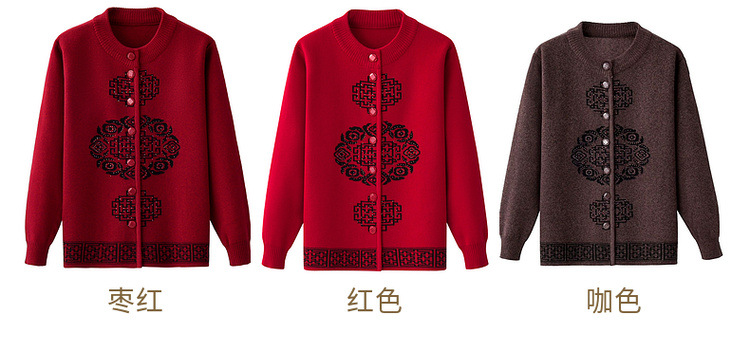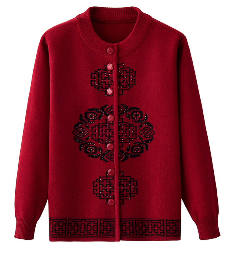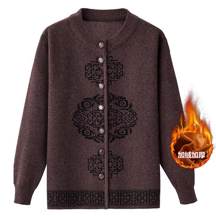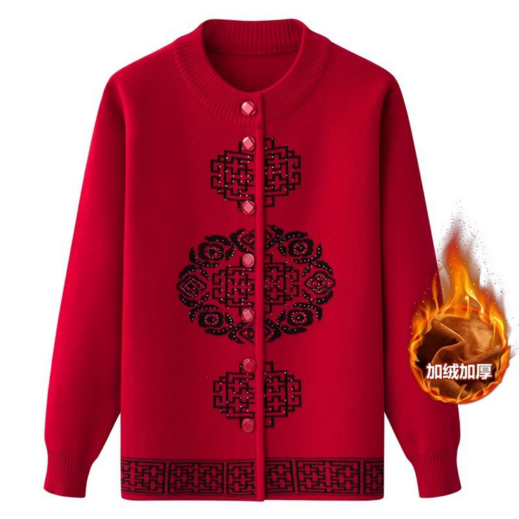 Мамино-новогодний праздничный Топ, свитер для средних и пожилых людей, кардиган, утолщенный свитер для бабушки на флисовой подкладке, пальто