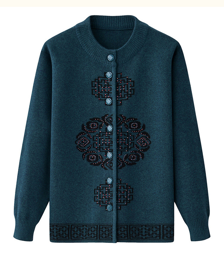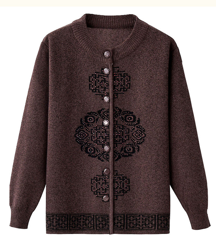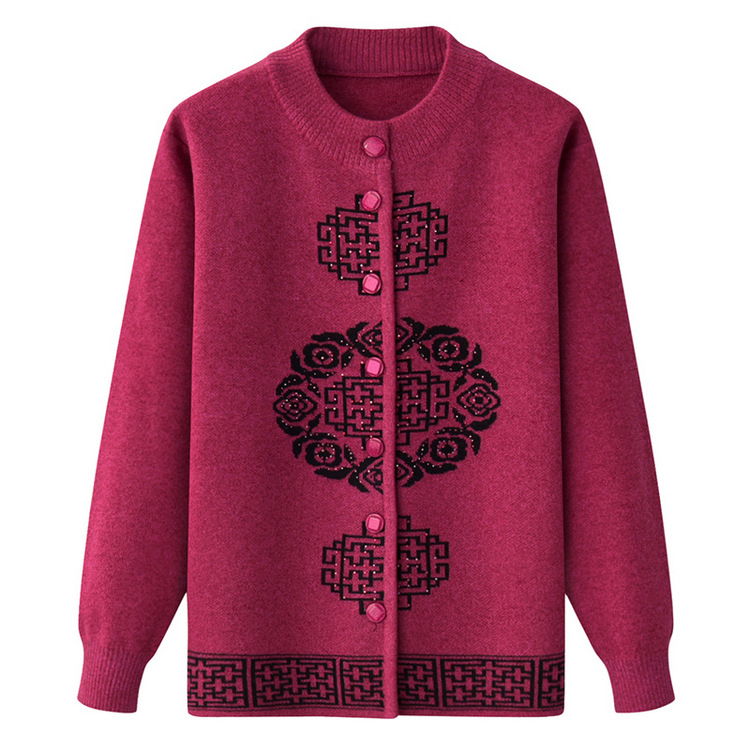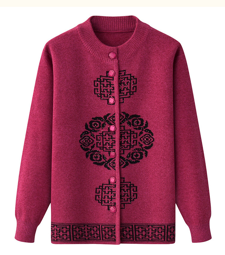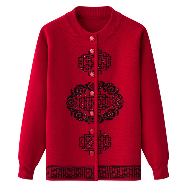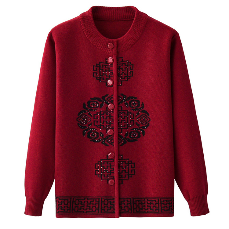 Мамино-новогодний праздничный Топ, свитер для средних и пожилых людей, кардиган, утолщенный свитер для бабушки на флисовой подкладке, пальто