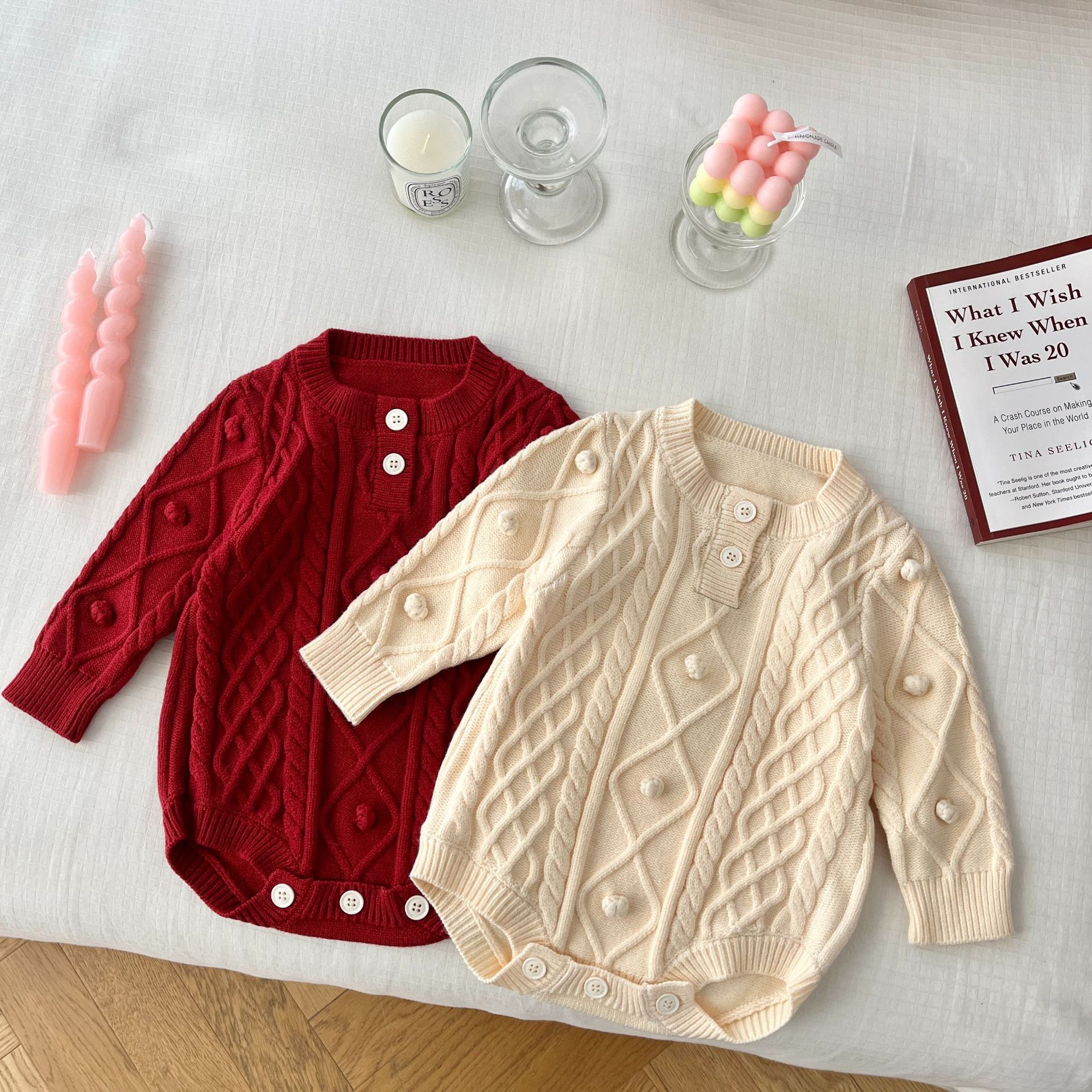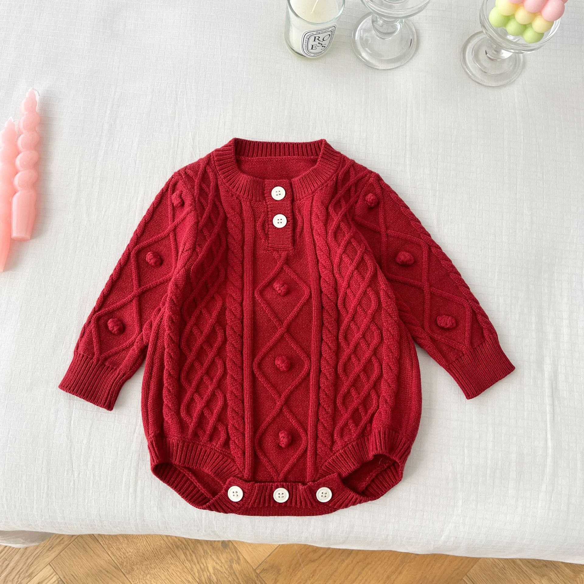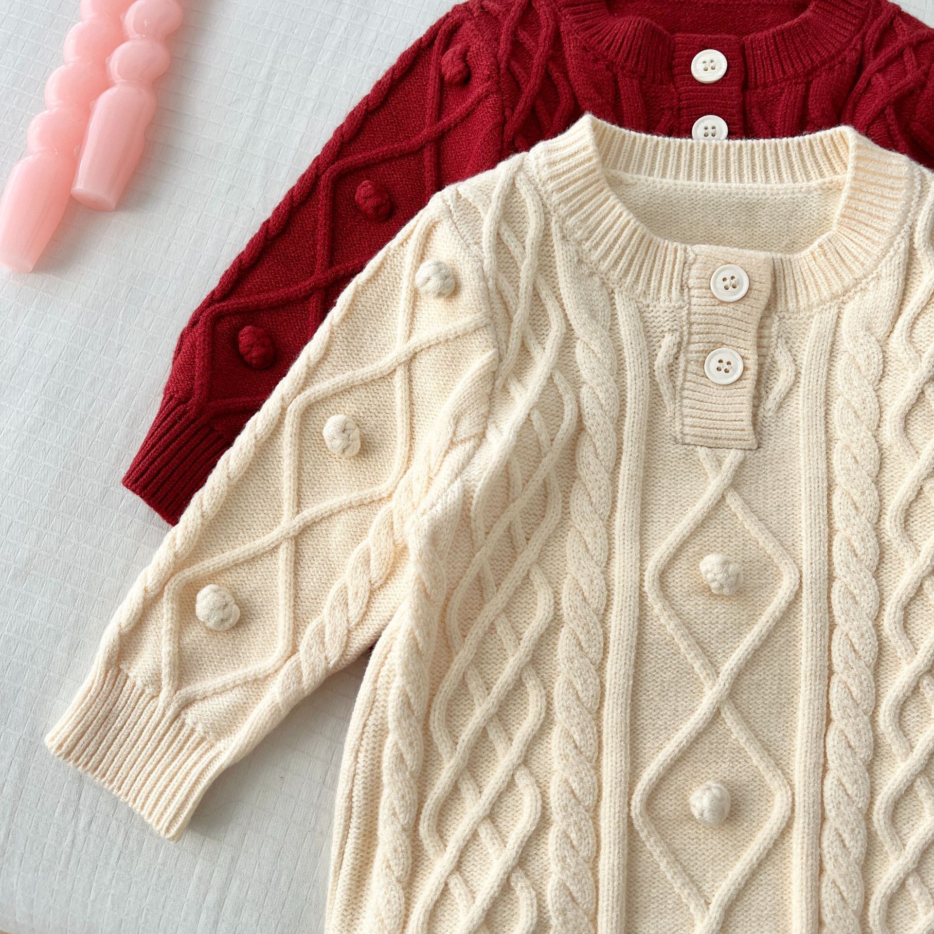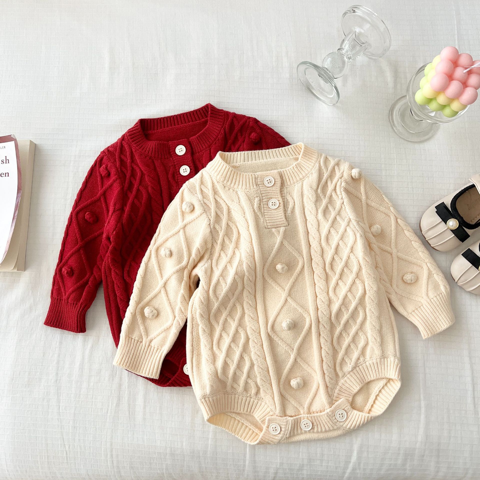 Детский трикотажный комбинезон-ромпер в корейском стиле, однотонный вязаный костюм для ползания, с разными расцветками (слева/справа), новогодняя одежда для малышей, модный