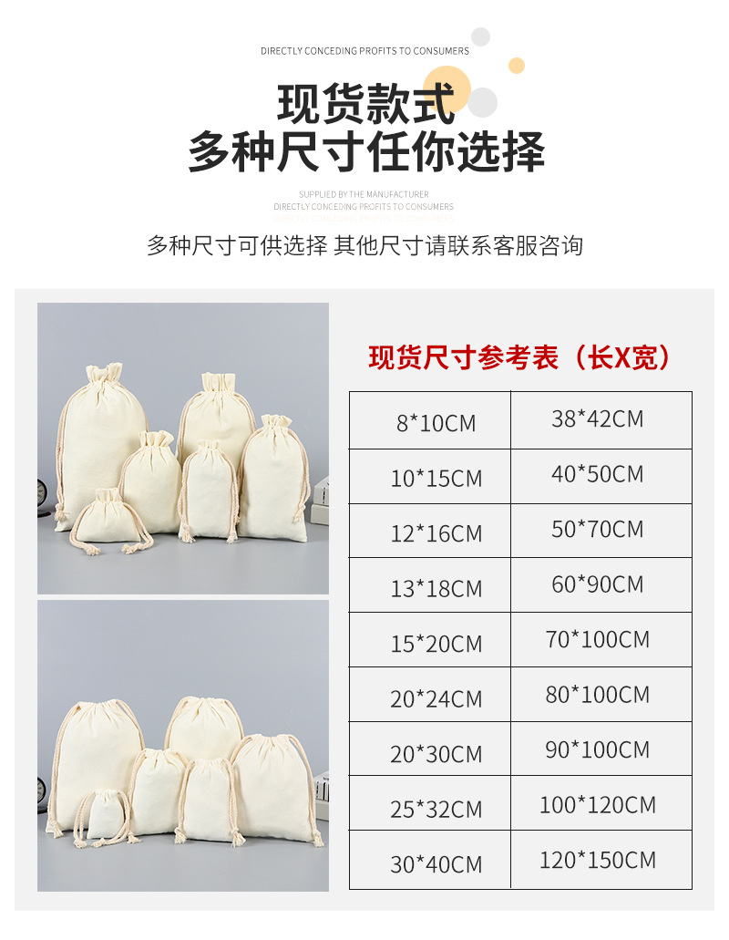 Спотовые веревки и корки пустые пыленепроницаемые хлопчатобумажные мешки для защиты от холста