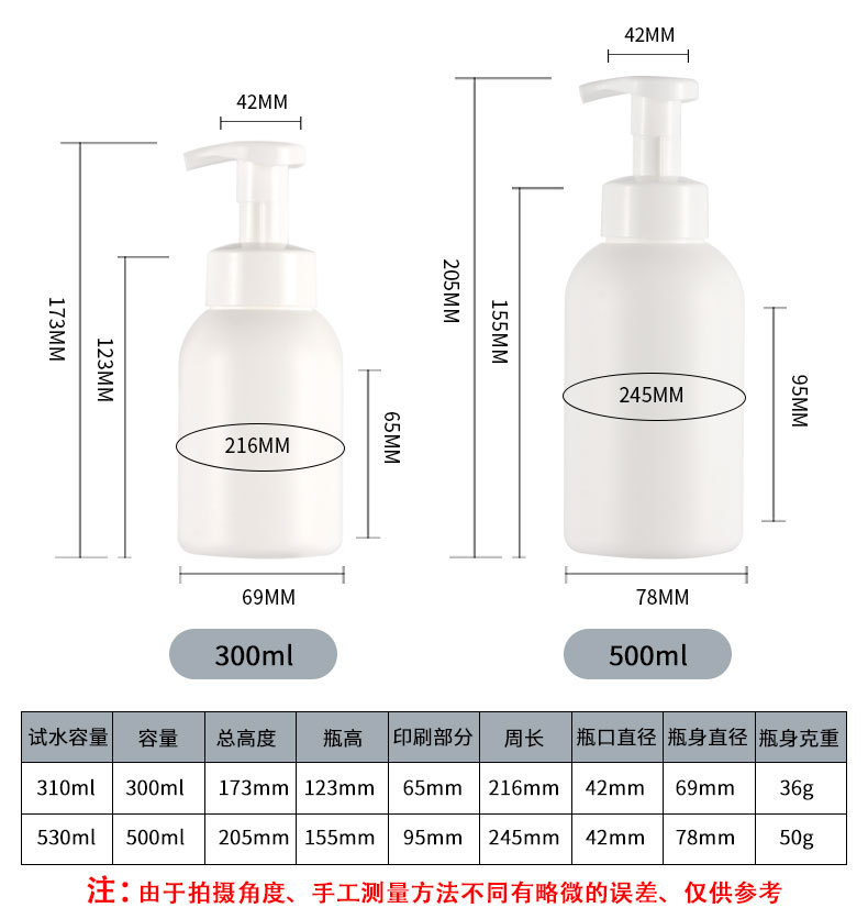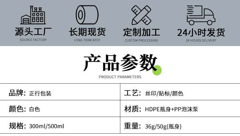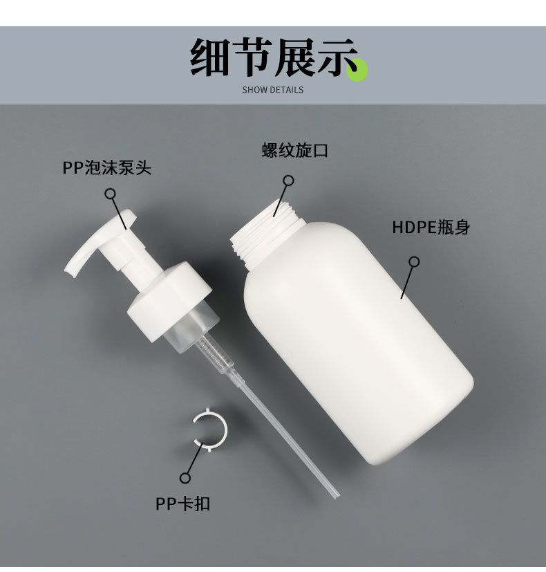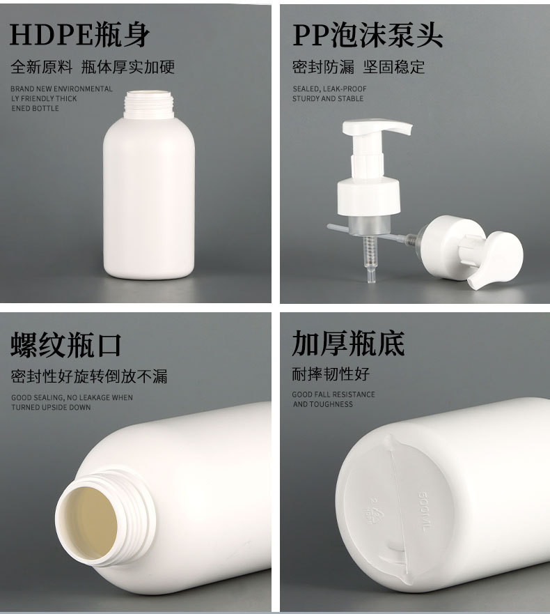 厂家供应白色塑料PE慕斯泡沫瓶500ML按压起泡洗手液洗面奶瓶子