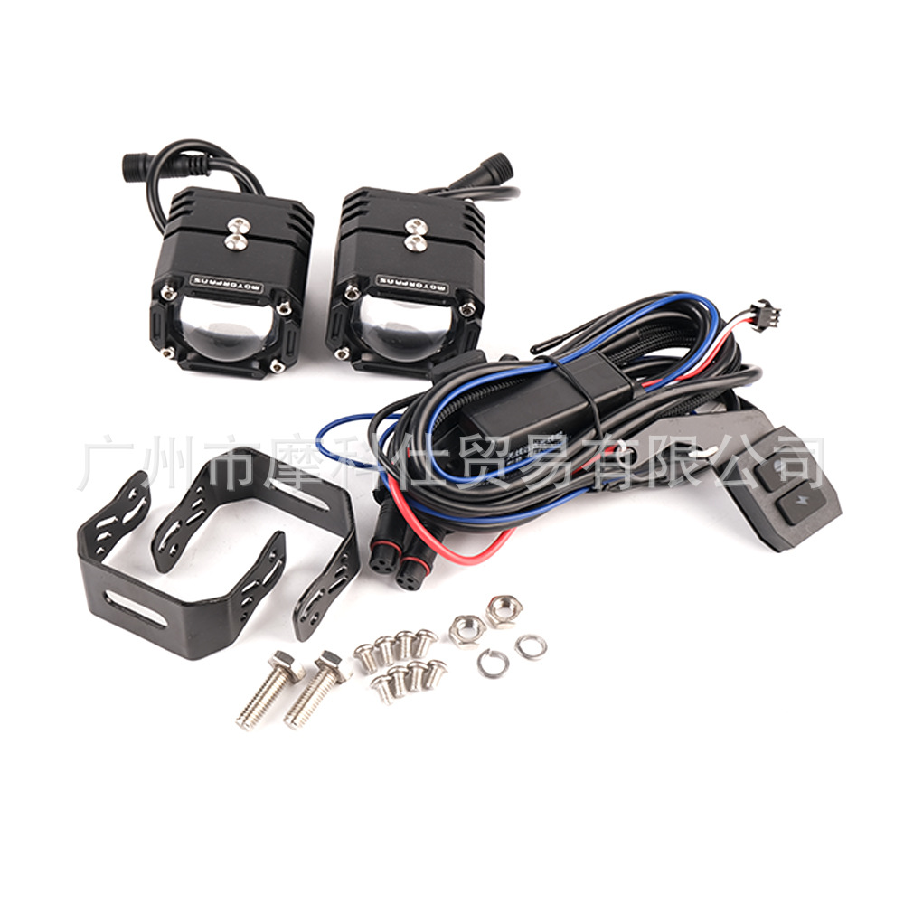 Применимо к автомобильному мотоциклу внешний прожектор светодиодный желтый и белый двухцветный маленький стальной пистолет мощный мотоциклетный дорожный водонепроницаемый прожектор