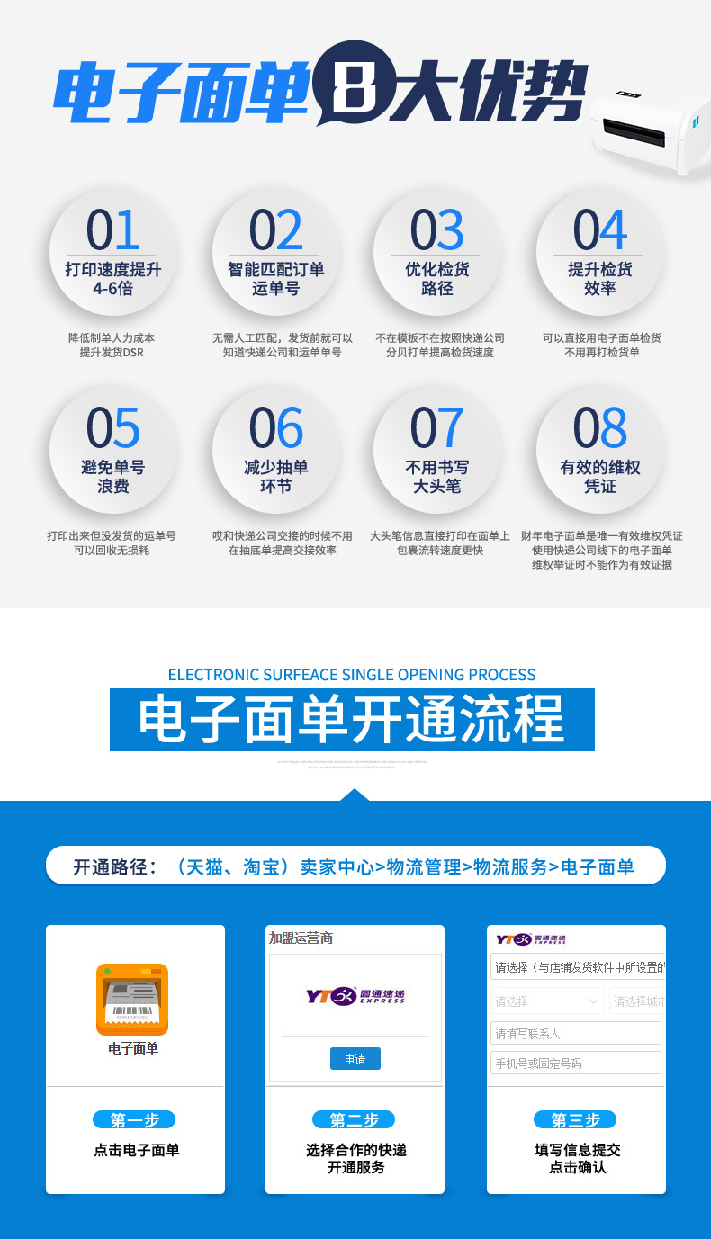 快递电子面单热敏打印机不干胶条码蓝牙连接快递物流跨境电商标签