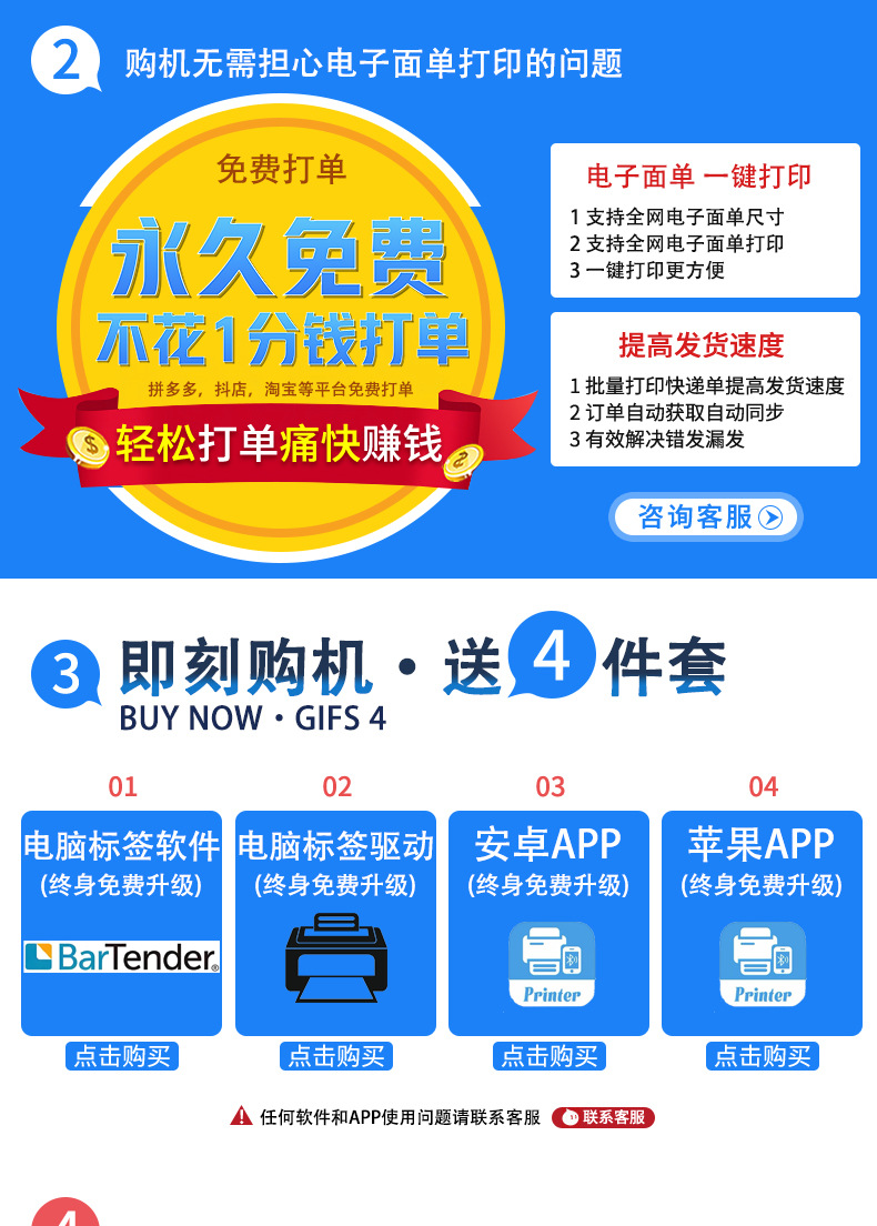1.双打模式: 支持标签打印和小票打印。