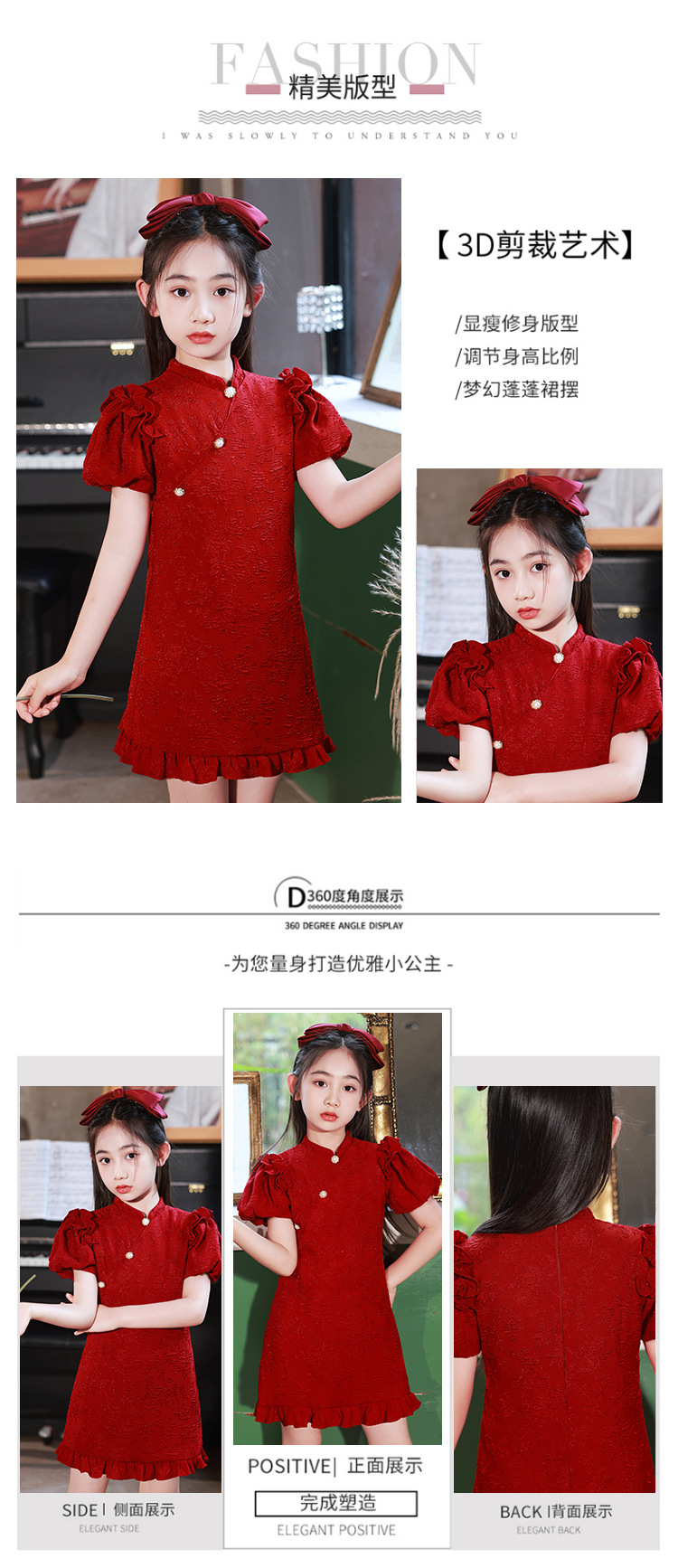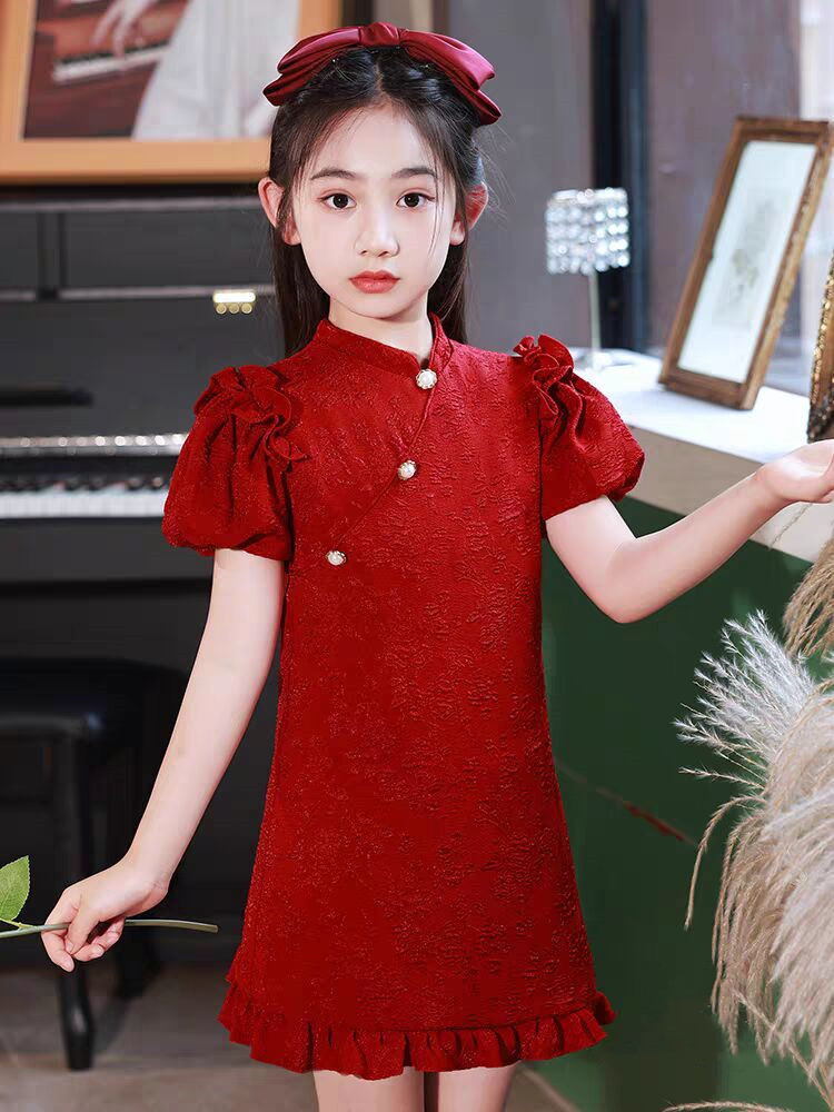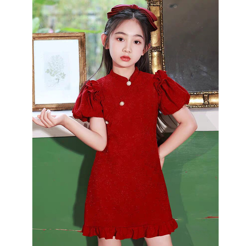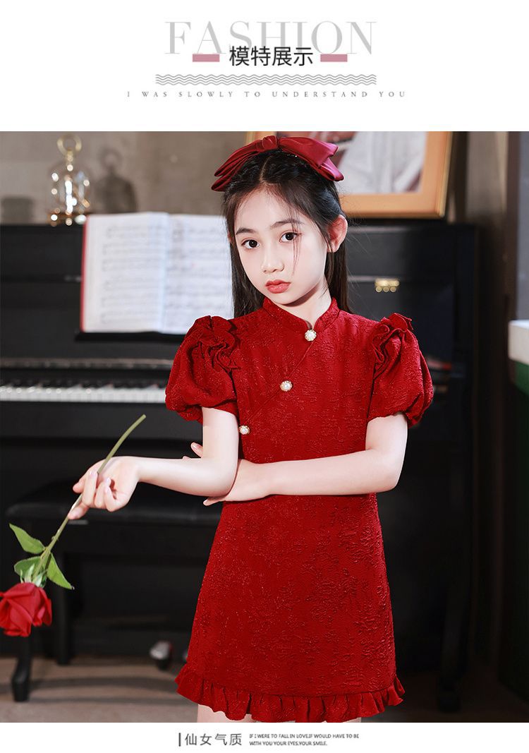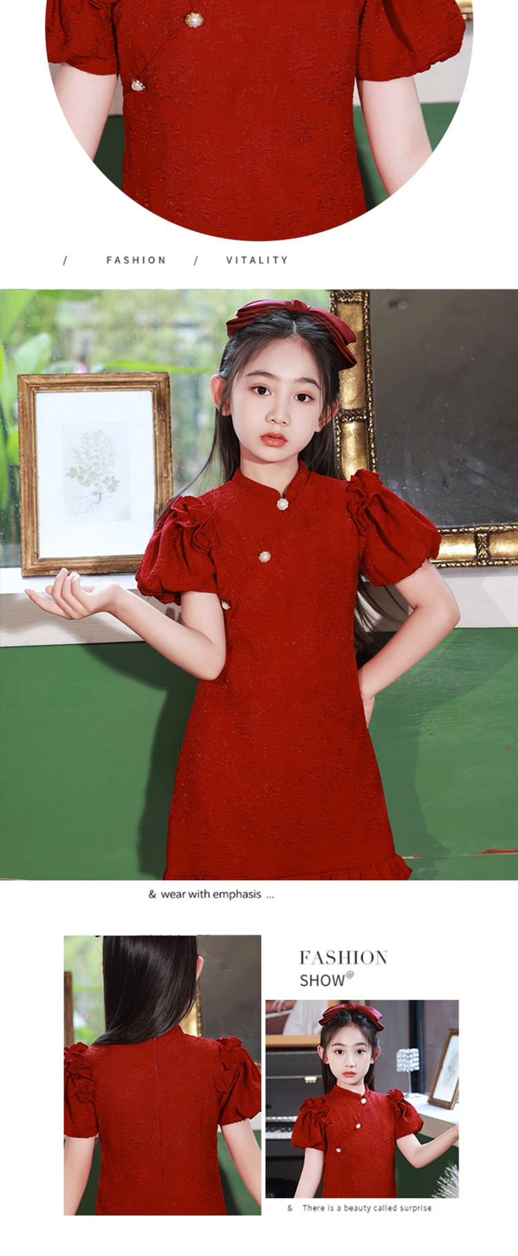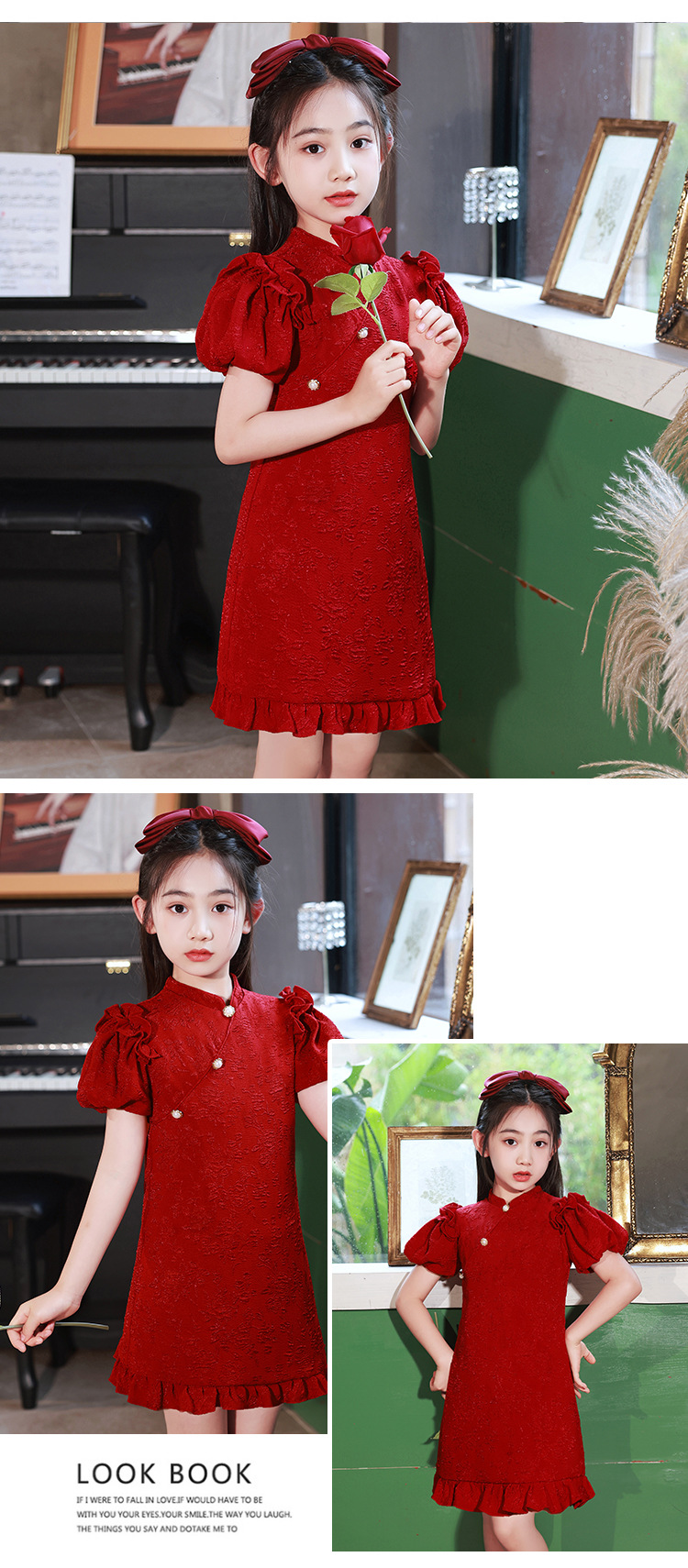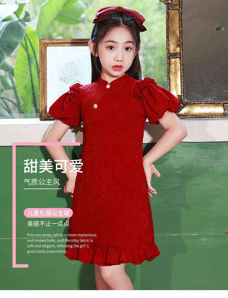Летнее платье для девочек Cheongsam Летнее платье ретро платье принцессы новый китайский стиль красное детское платье для девочек