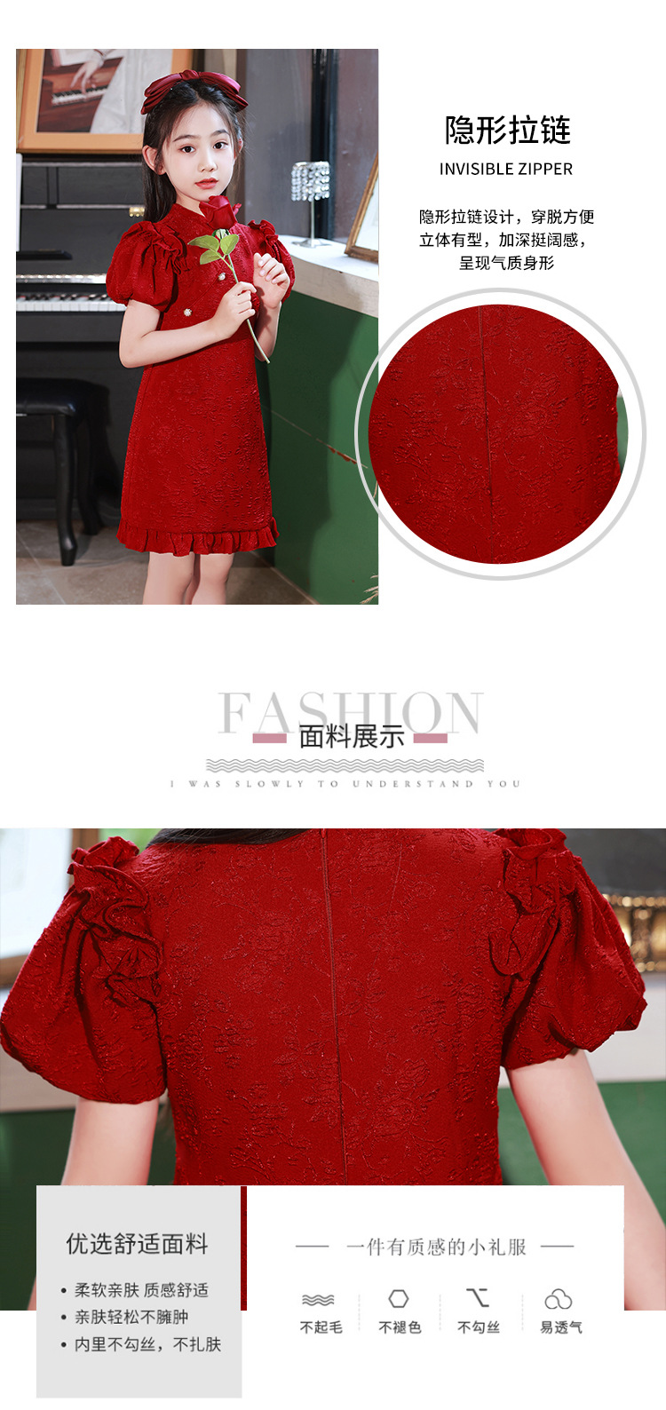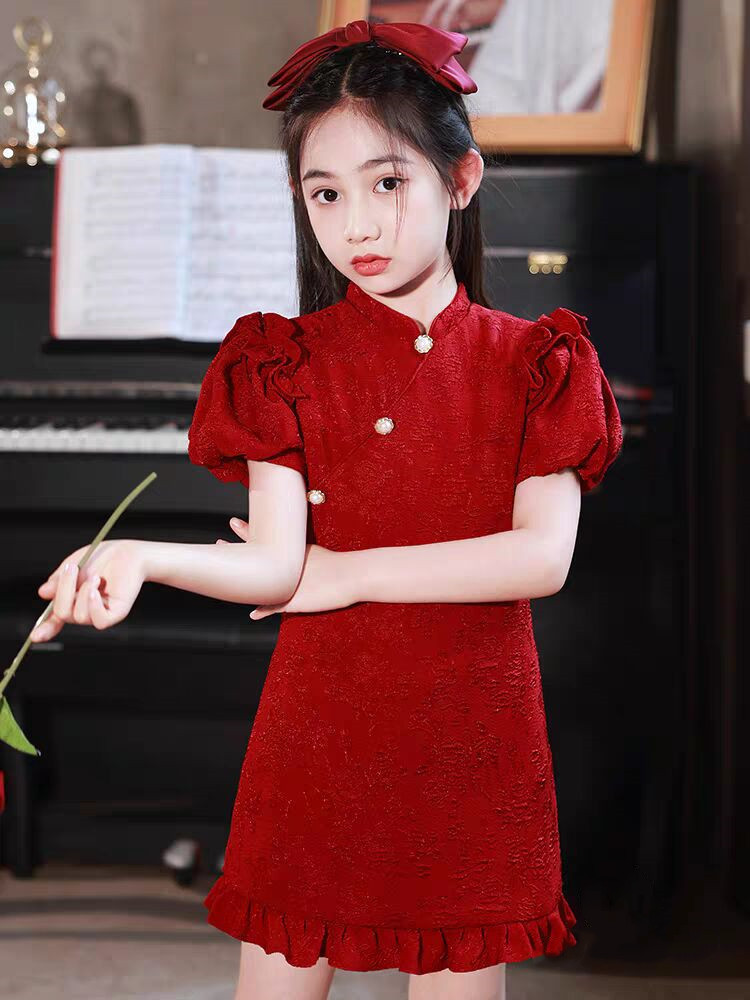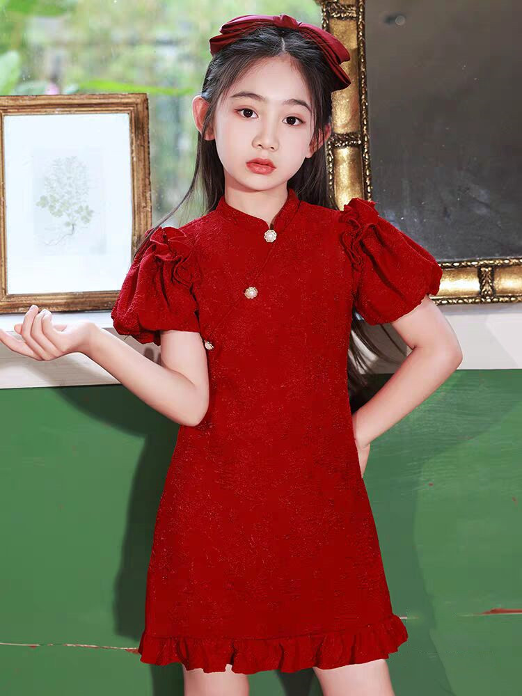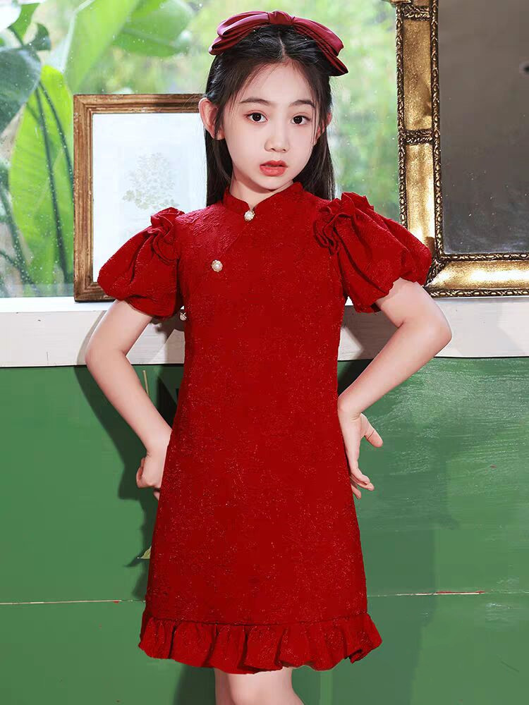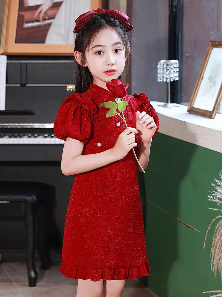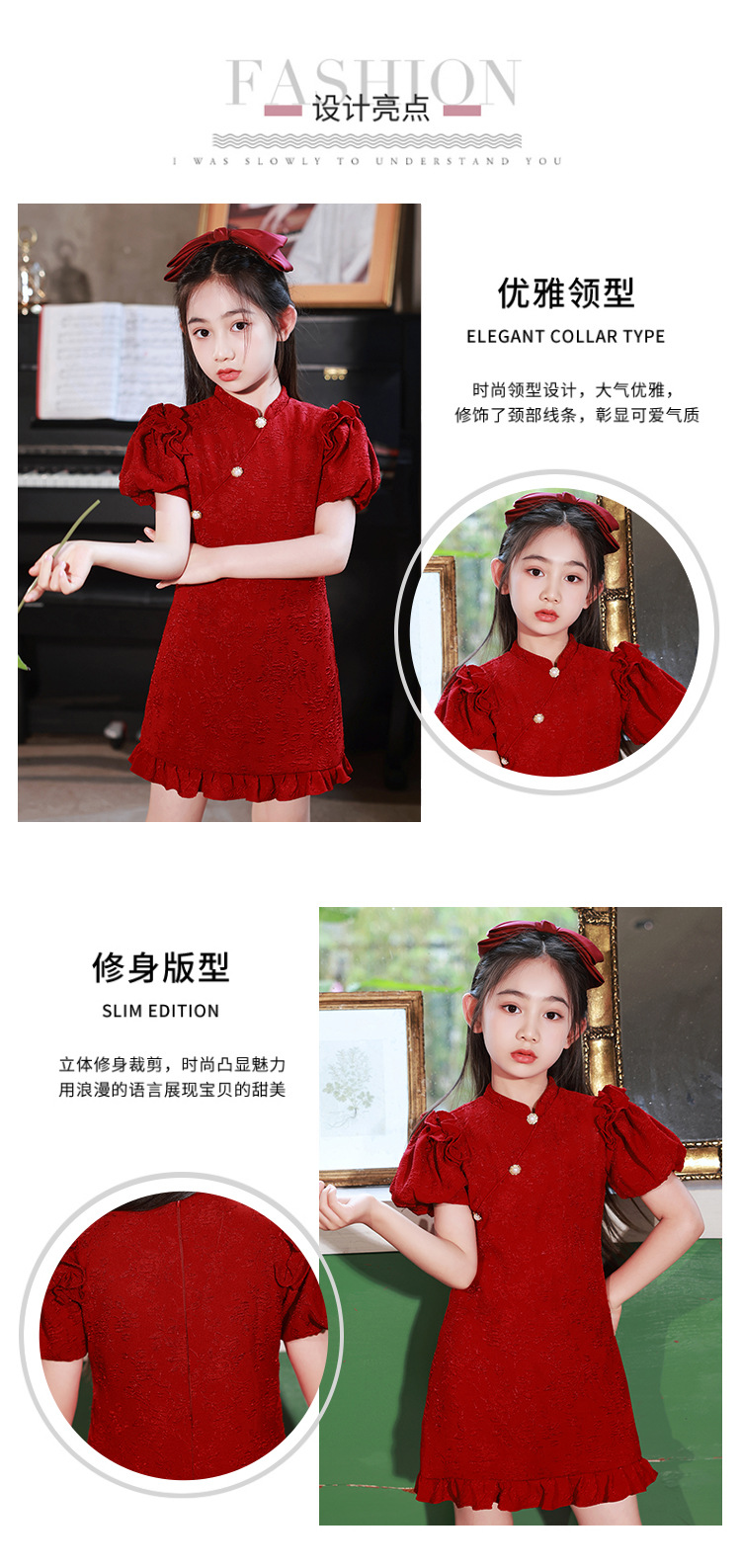 Летнее платье для девочек Cheongsam Летнее платье ретро платье принцессы новый китайский стиль красное детское платье для девочек