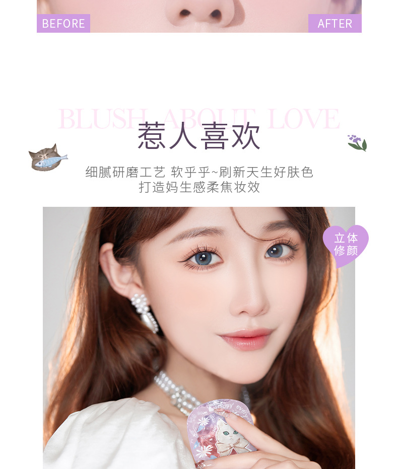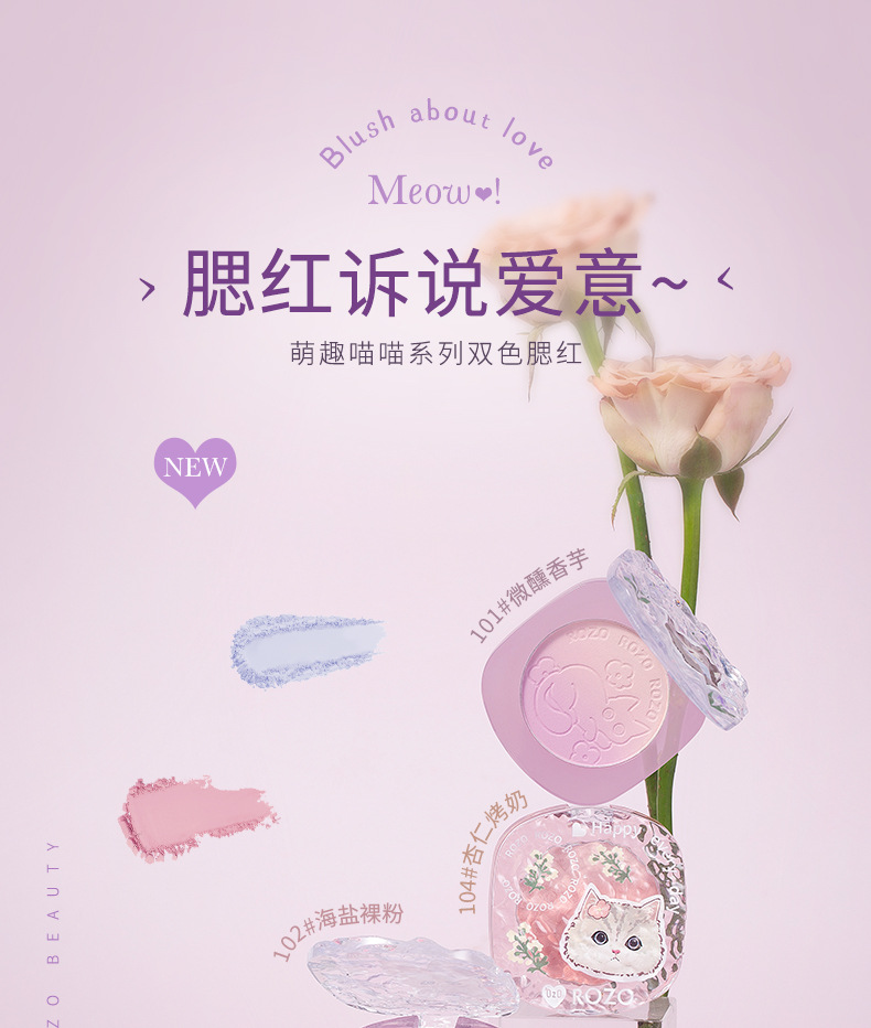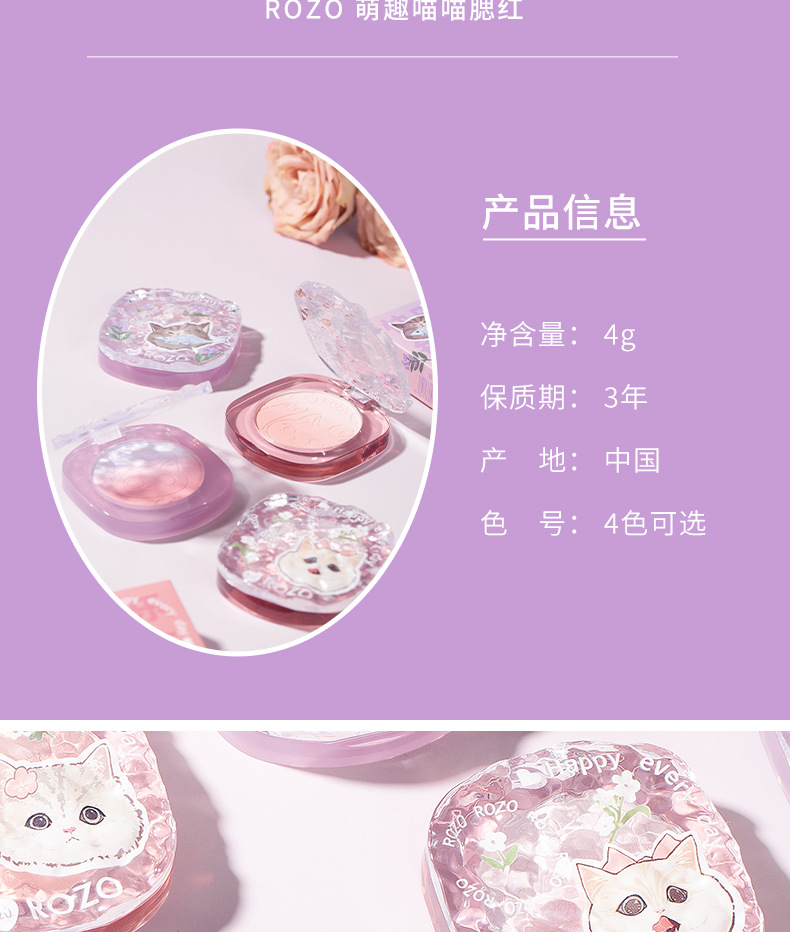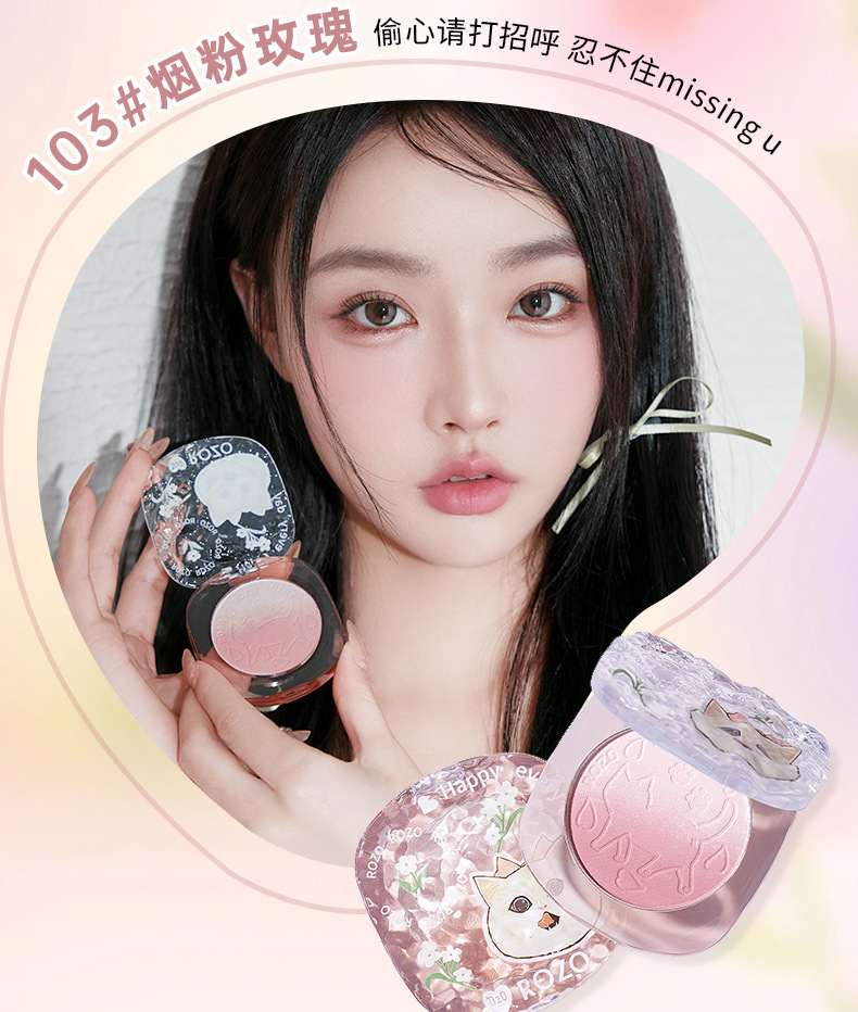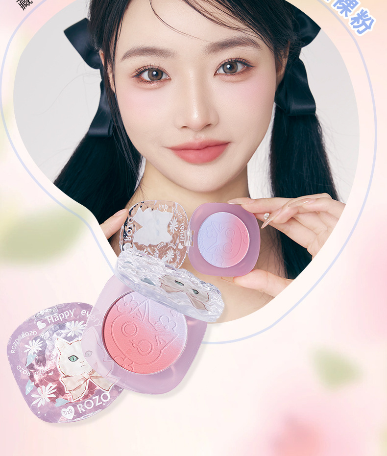 ROZO Meow Румяна пластины двухцветный градиентный подбородок Фиолетовый Синий расширение цвета Румяна естественный Осветляющий матовый ремонт румяна крем