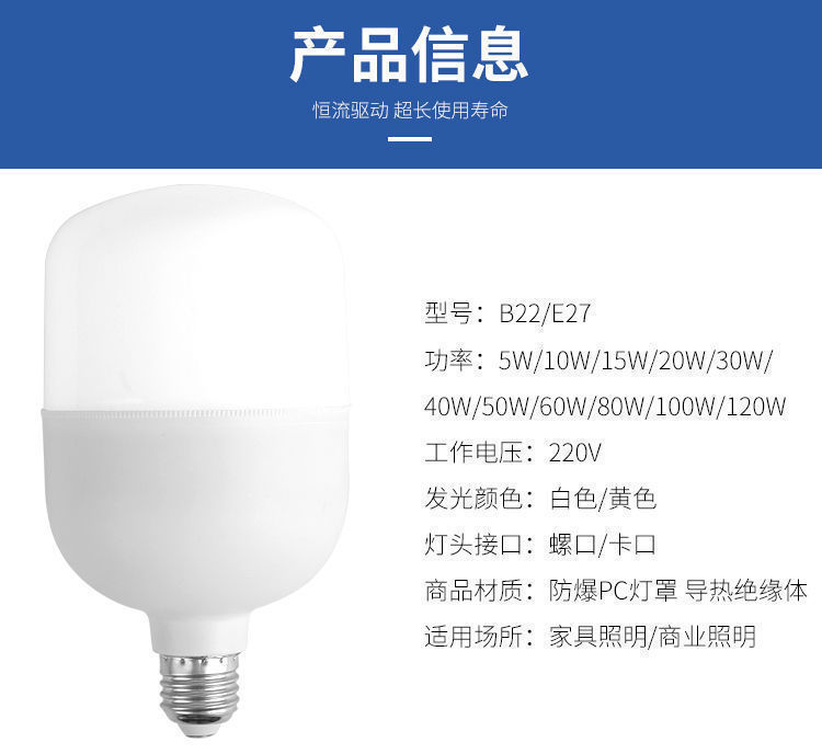 Светодиодная лампа супер яркая E27 с винтовым ртом Бытовая белая осветительная лампа Заводская мастерская энергосберегающая лампа высокой мощности