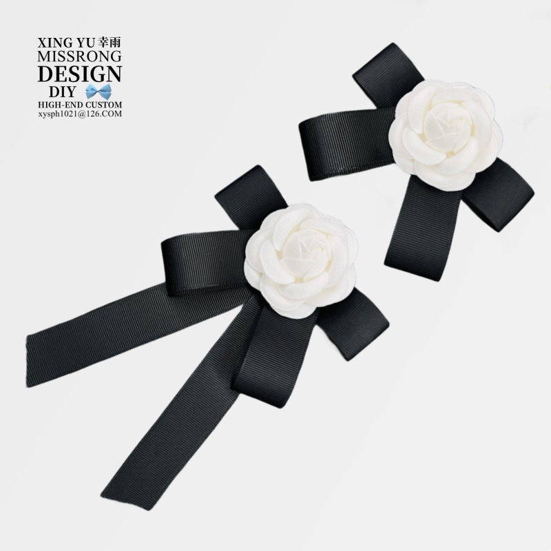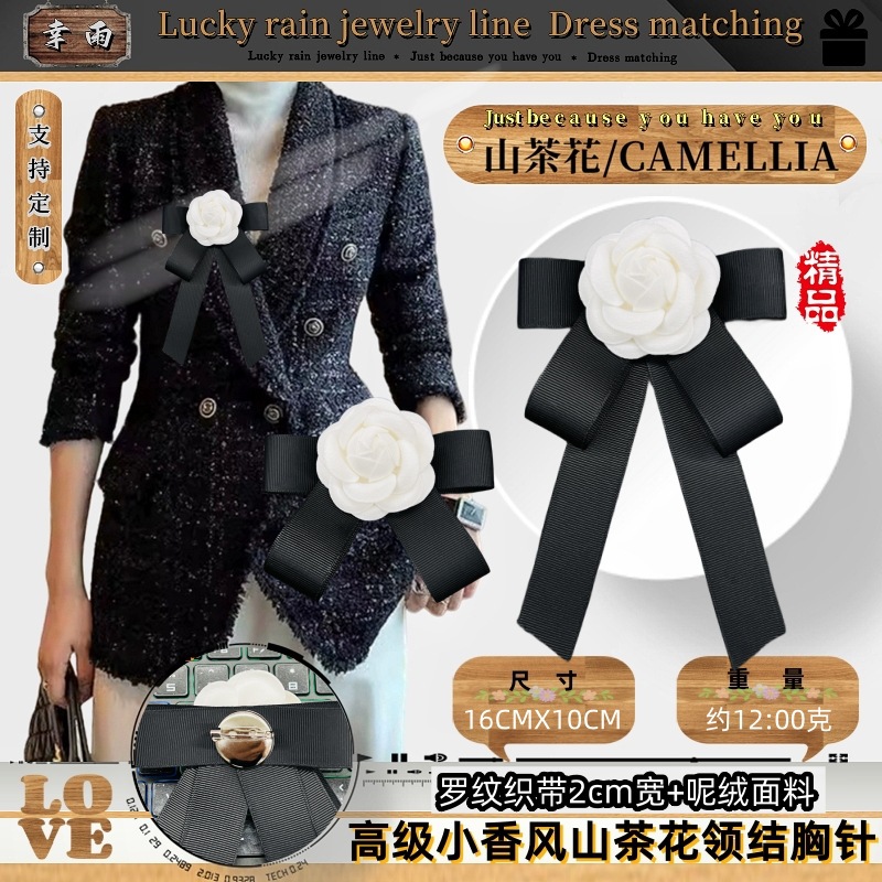 Южнокорейская высококачественная черная ребристая лямка Dongdaemun и двусторонняя утолщенная шерстяная брошь-корсаж с камелией
