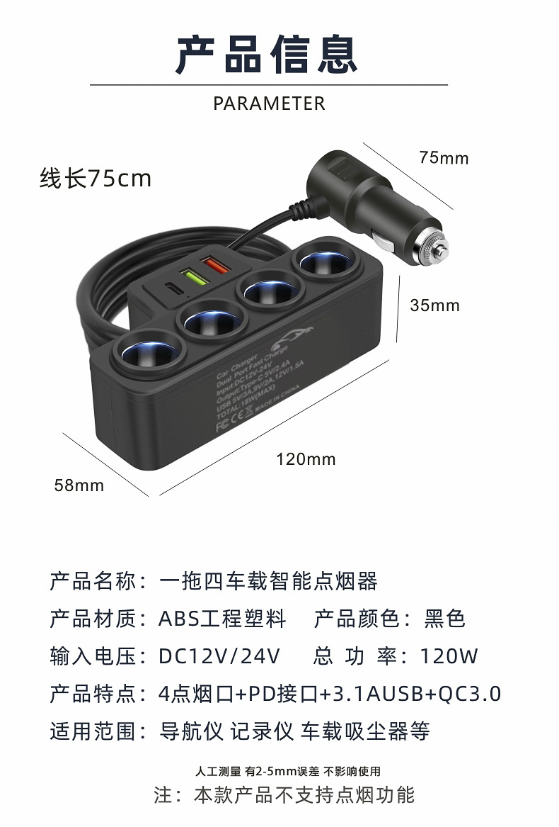 Новое автомобильное зарядное устройство 2025 года, автомобильный прикуриватель от одного до четырех человек с QC3.0 + USB + PD, интерфейс быстрой зарядки 12 В, 24 В, универсальный