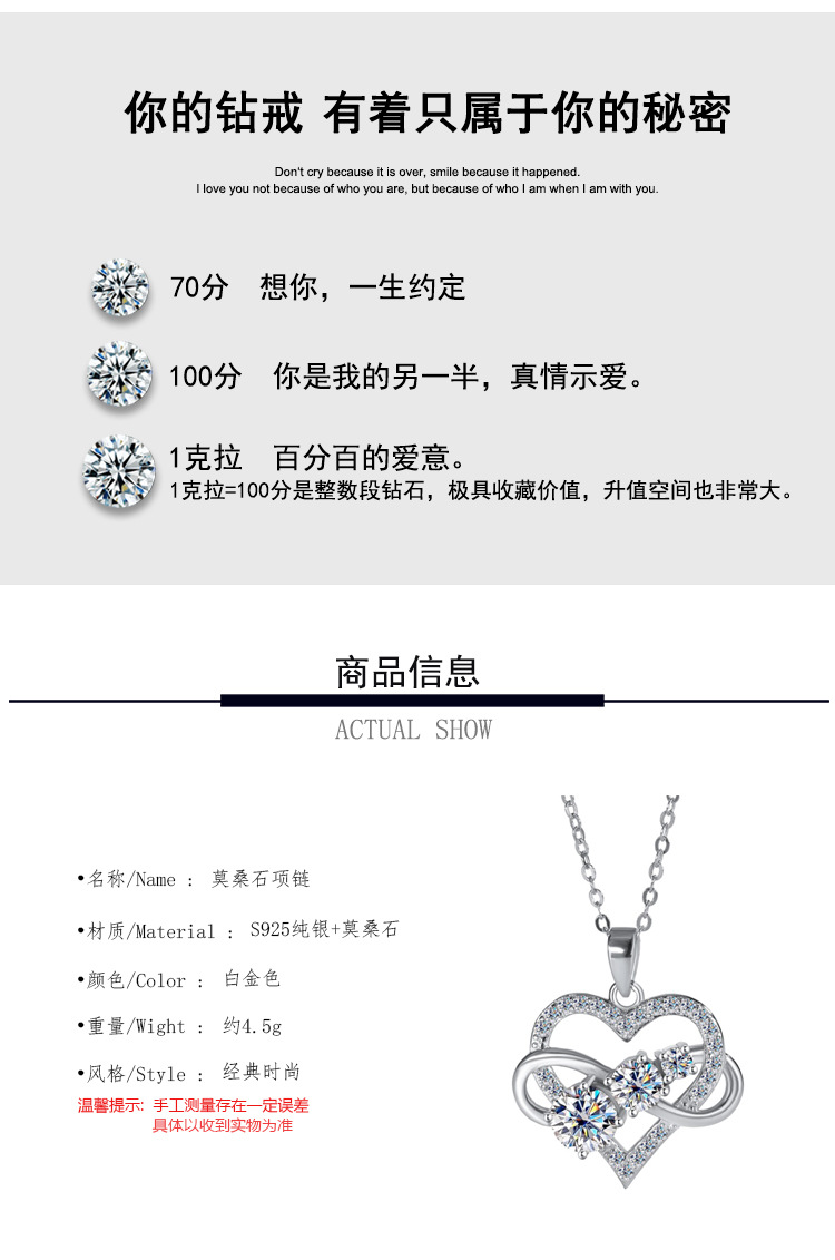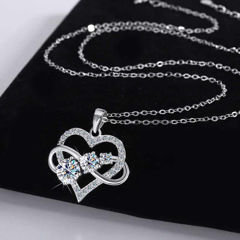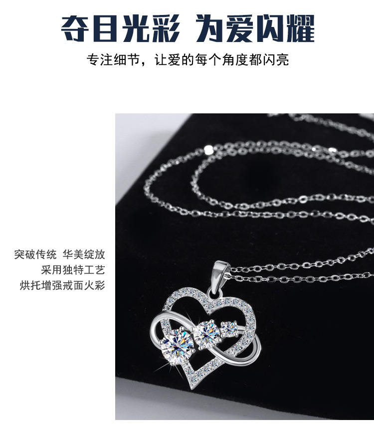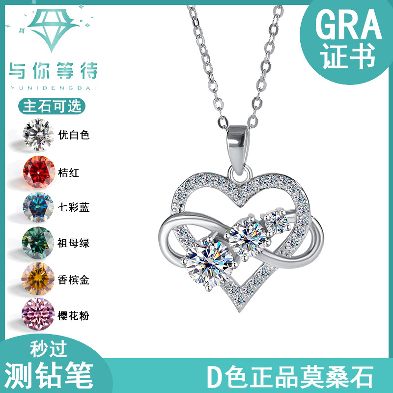 925 Серебряный моассанит три жизни III любовное ожерелье женская легкая роскошная минималистская цепочка ключицы 1,8 карат мосан бриллиант оптом