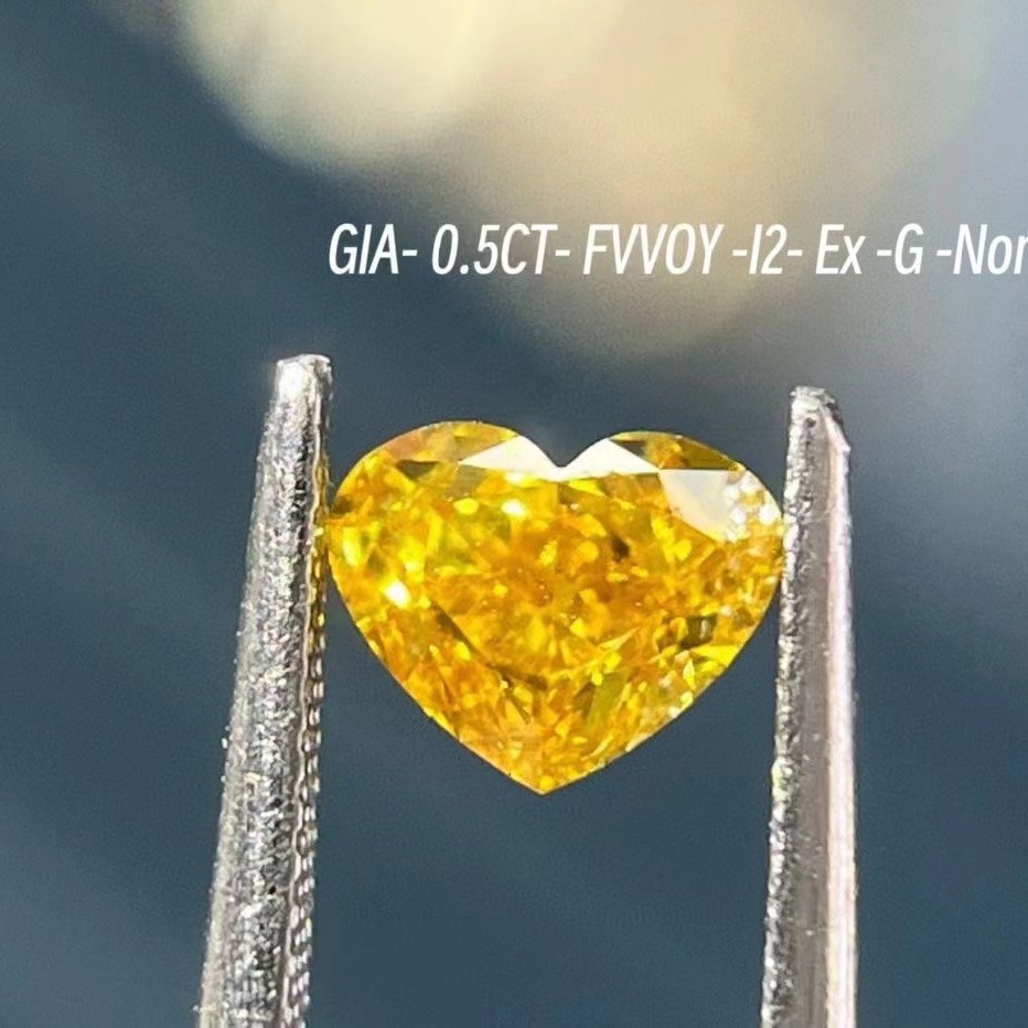 GIA Международный сертификат 0.5CT Сердце желтое бриллиантовое кольцо инкрустированное кольцо подвеска ювелирная чистота I2 мода сердце голый камень