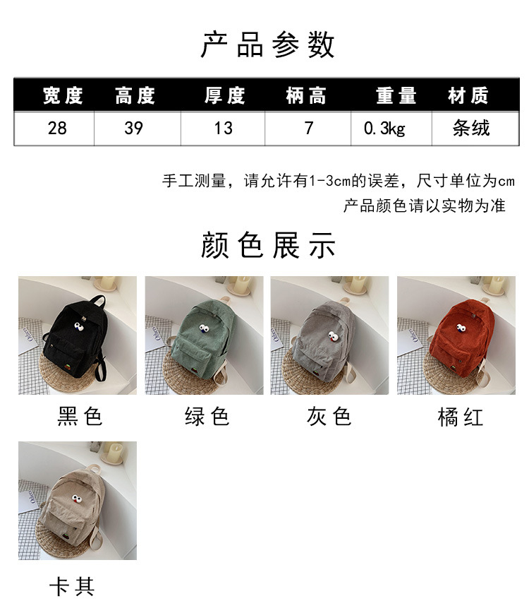 Вельветовый рюкзак, женский модный подходящий ко всему корейский стиль, милый свежий рюкзак для кампуса, школьная сумка в стиле ins