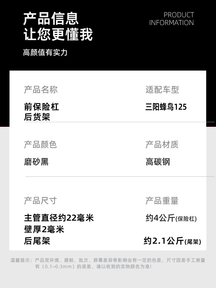 Передний бампер усиленный черной углеродистой сталью; Черный передний бампер + 22 квадратных светоотражающих Hug Block 1 пара; Черный передний бампер + 22 квадратных светоотражающих блока объятий 1 пара + прямой круглый блок объятий 1 пара; Черный передний бампер + 22 квадратных светоотражающих блока объятий 1 пара + прямой круглый блок объятий 2 пары; Черный углеродистой стали задний Tailstock; Черная универсальная спинка с высоким отскоком