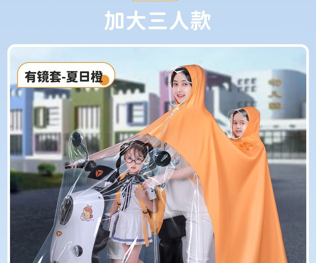 Плащ для родителей и детей с электромобилем очень большой утолщенный плащ для трех человек, линия матери и ребенка, Женский непромокаемый плащ для всего тела, оптовая продажа с фабрики