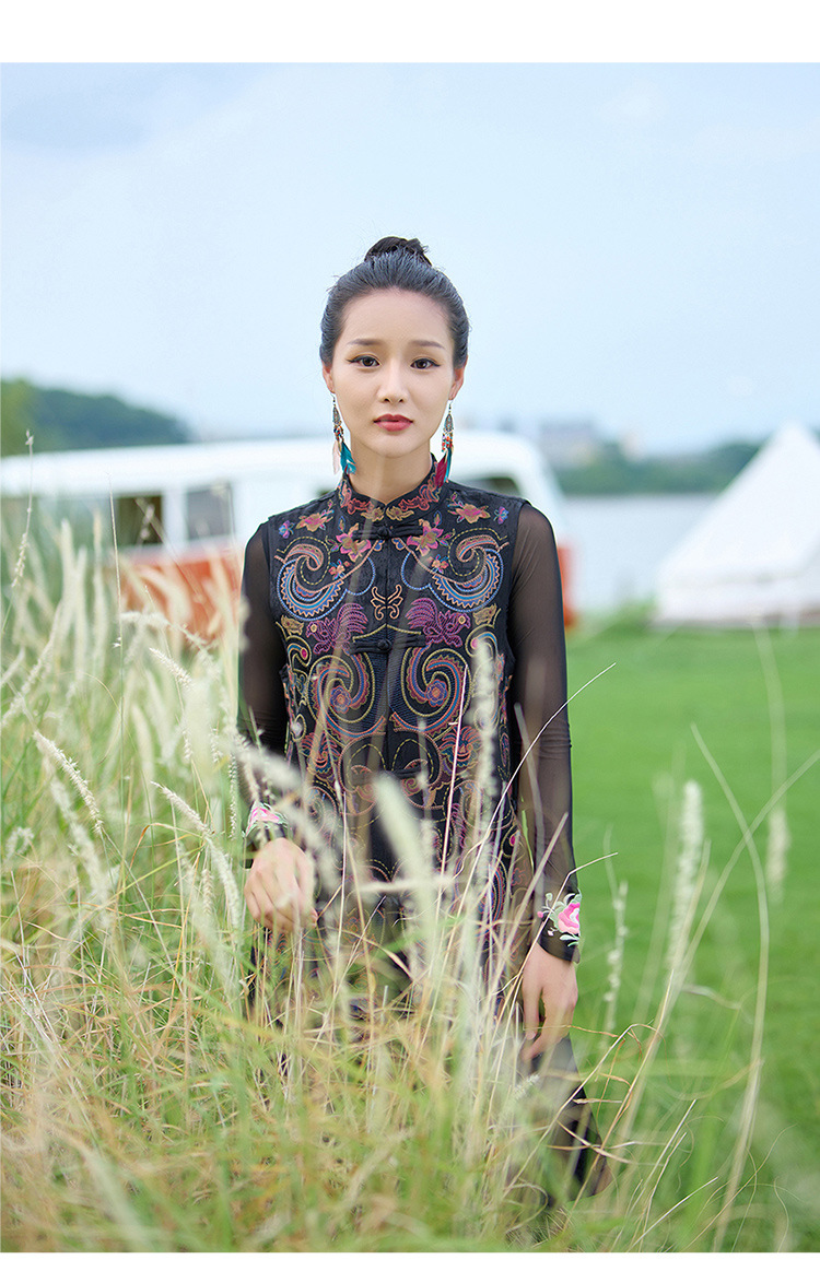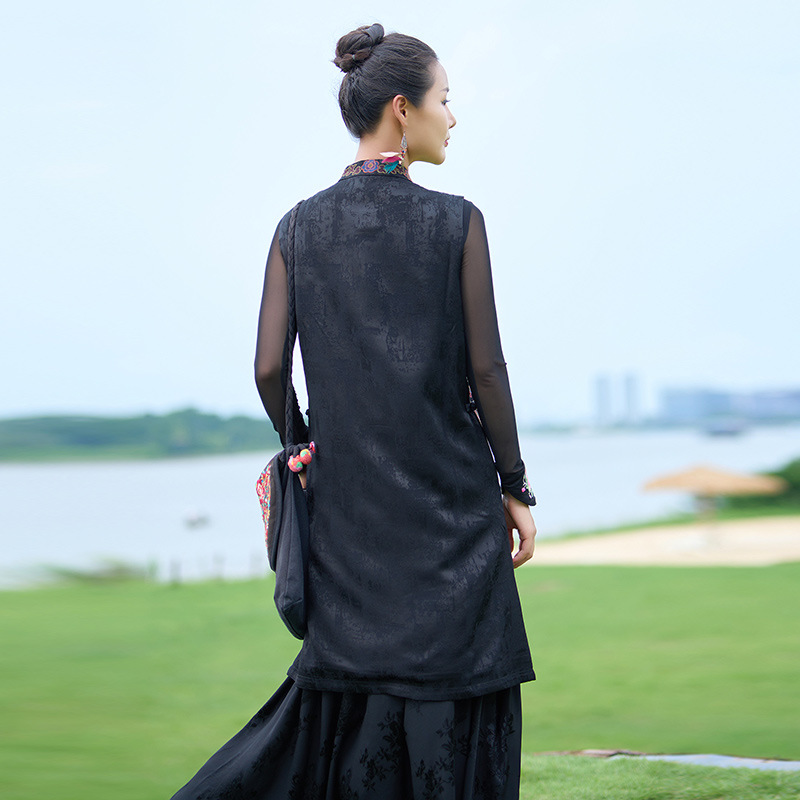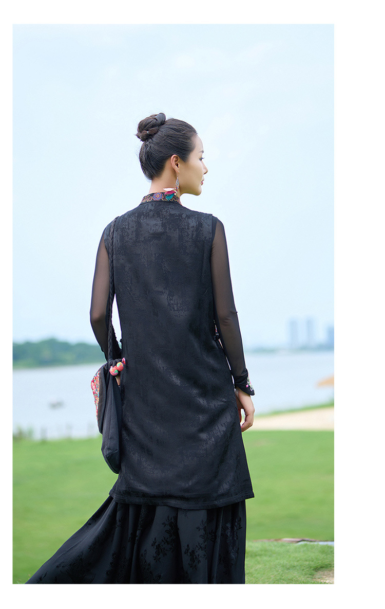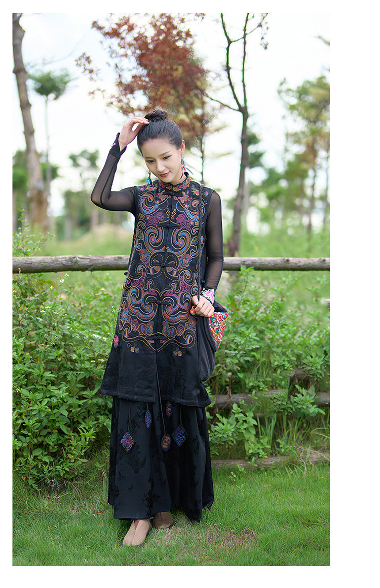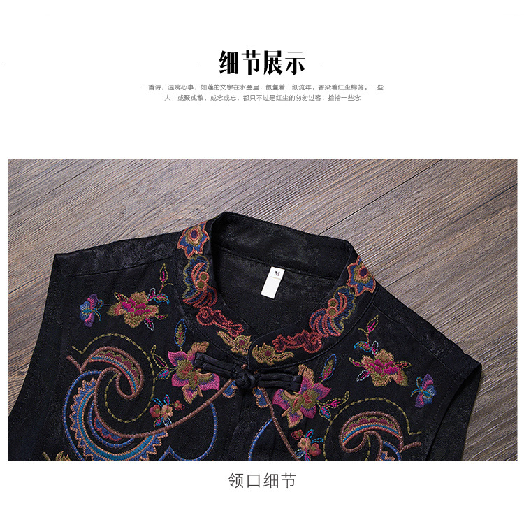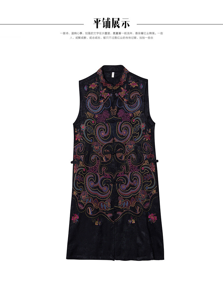 Новый женский этнический стиль воротник-стойка вышитый жилет средней длины без рукавов воротник-стойка с пряжкой вышитый жилет